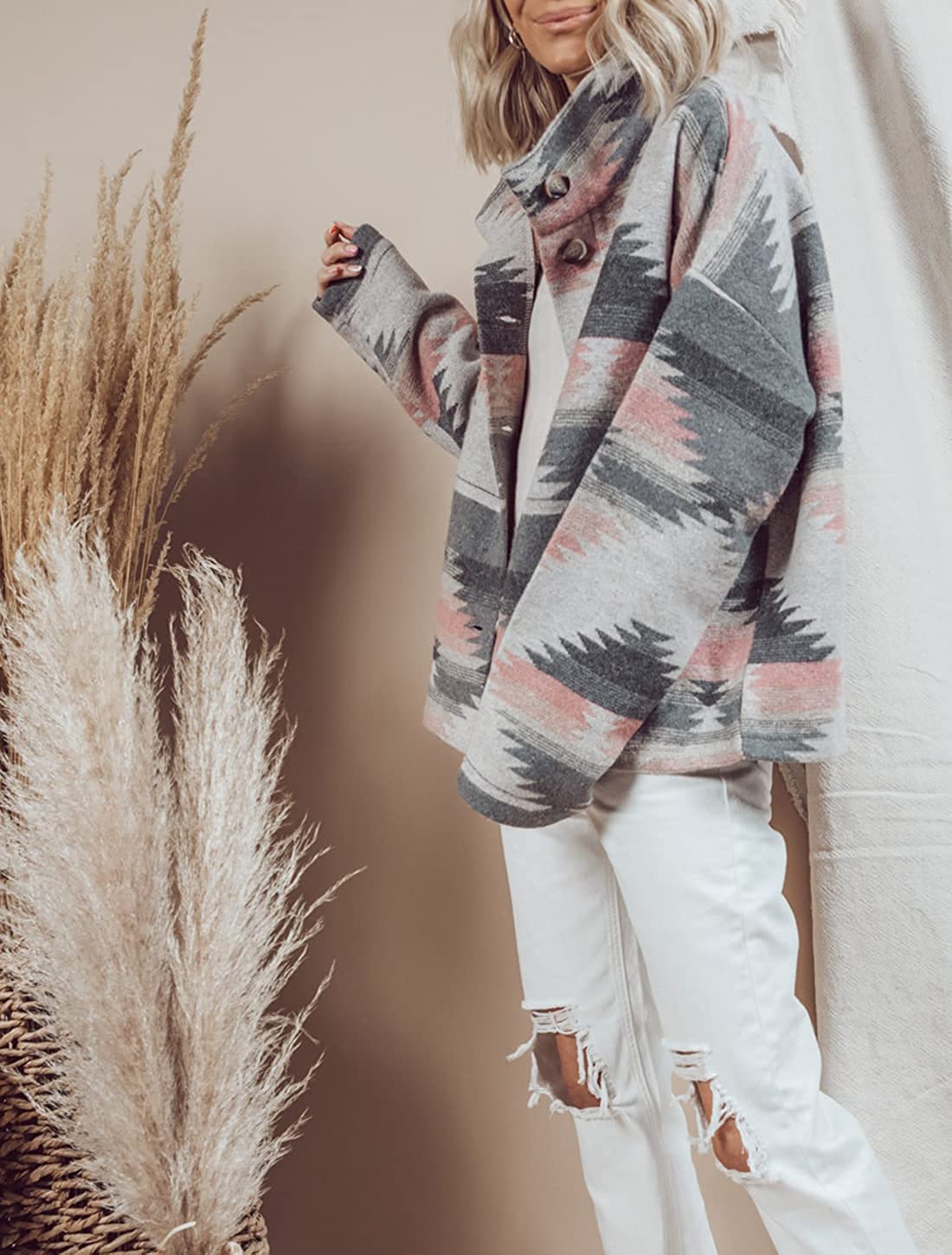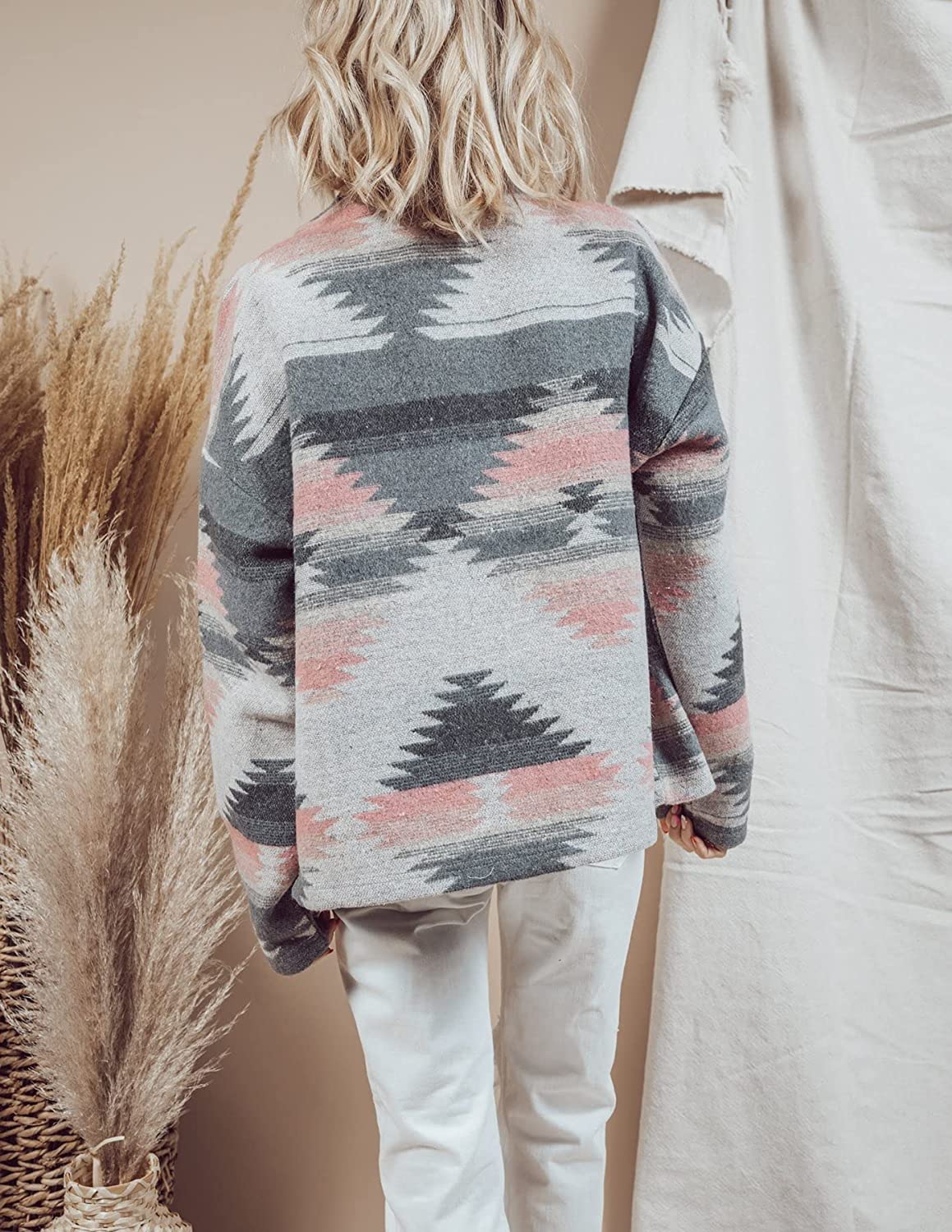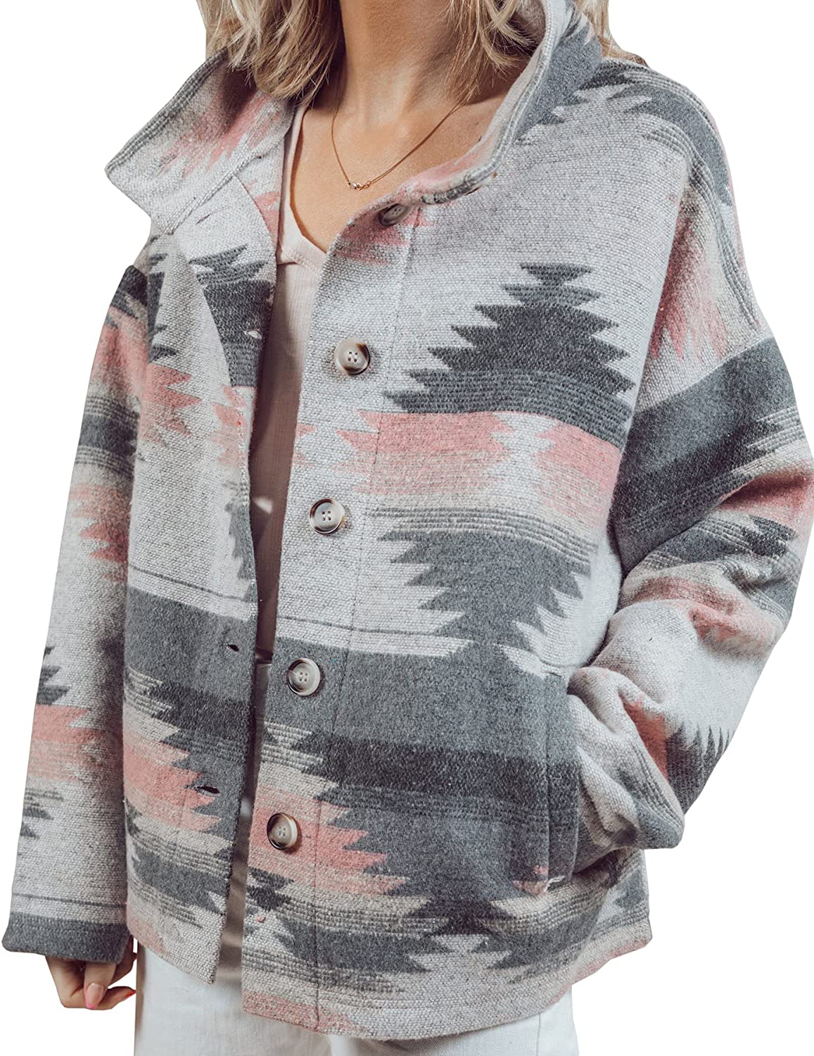 Heltapy Womens Aztec Shacket Jacket Loose Vintage Boho Wool Blend Coat Button Down Shirt Tops