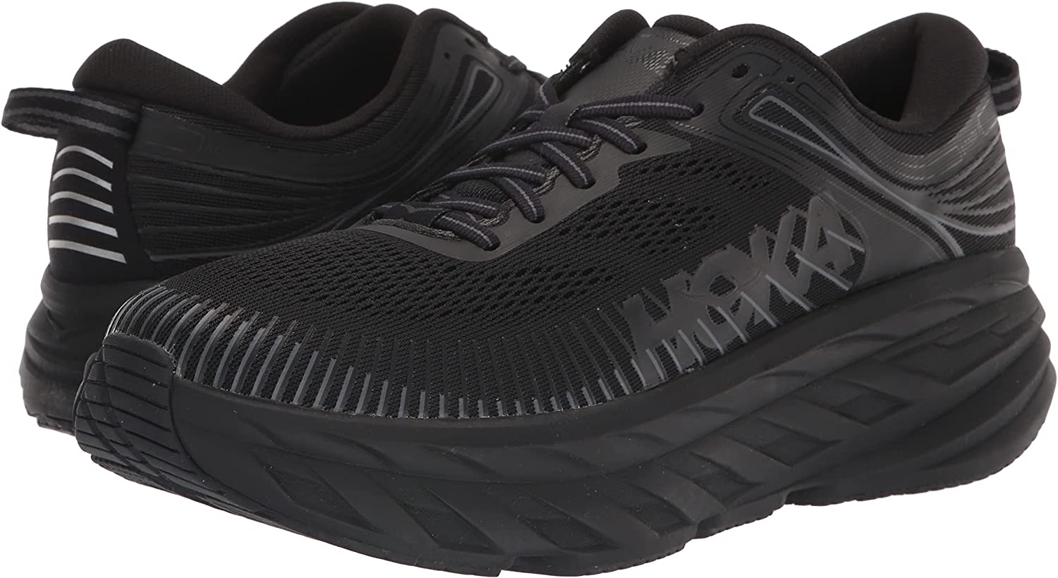 The most cushioned shoe in the HOKA road-shoe lineup, the game-changing Bondi 7 delivers a smooth, balanced ride over any distance. Engineered with the same full EVA midsole, breathable mesh upper and signature Meta-Rocker technology as its predecessor, the Bondi 7 is updated with a supremely plush collar. Made from ultra-soft memory foam designed to accommodate a narrower heel, the collar conforms to a wide variety of ankles, cradling the Achilles in cushy comfort. Unquestionably, the Bondi 7 will take you far and wide.