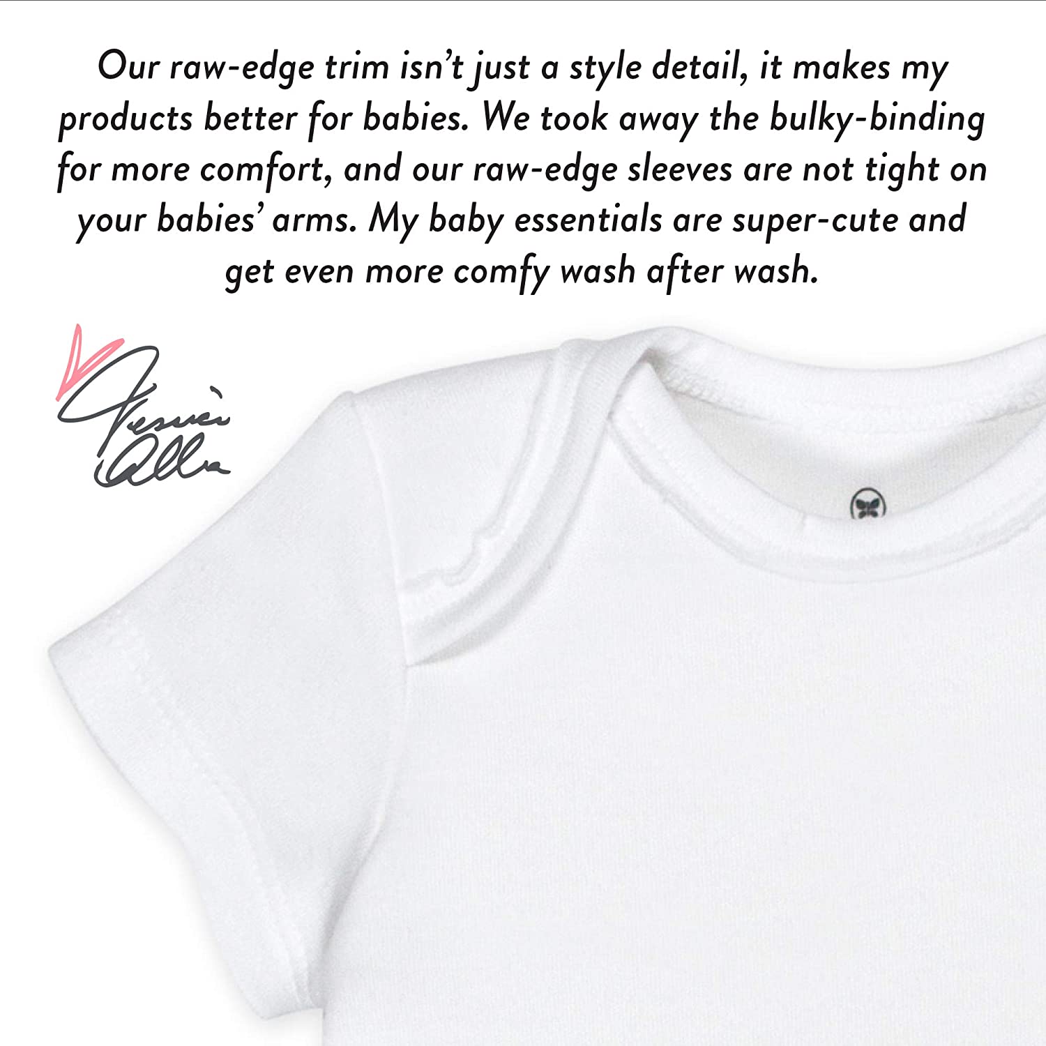 Short sleeve bodysuits are the baby essentials you can't do without. Available in a 5-pack, our comfy bodysuit has an envelope neck that expands and nickel-free snaps at the bottom to make it easy to get on and off. Made from 100% organic cotton, this short-sleeve bodysuit is just right to wear on its own or layered for super-cute styles. Perfect baby clothes to use as blanks for a baby shower game or just to have in bulk so there is always a clean bodysuit on-hand when you need it. Honest makes organic cotton baby clothes for girls, boys and the little one that hasn't yet been revealed.