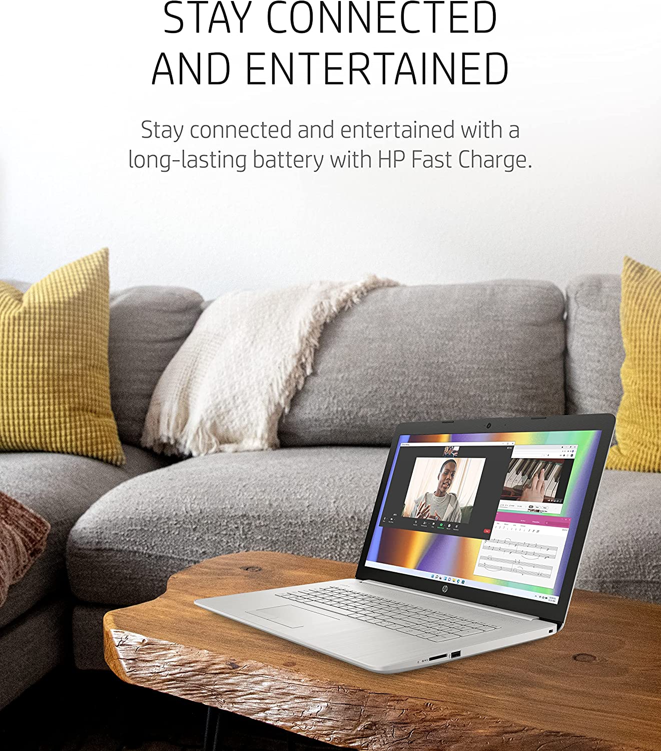 Thoughtfully crafted, the HP 17 Laptop PC blends style with performance and comfort. With its sleek, stylish design, full-sized keyboard and integrated numeric keypad, this eye-catching laptop looks as good as it performs and lets you work comfortably from anywhere. Enjoy your photos, movies, and games with the crisp quality of 1.4 million pixels on a 17.3-inch diagonal, HD+ (1600 x 900) screen (1). Enjoy fast performance and modern graphics thanks to the powerful combination of the 11th Generation Intel Core i3-1115G4 processor (2) and Intel UHD Graphics (3). With its 256 GB PCIe NVMe M.2 Solid State Drive (4), your HP computer laptop offers the storage you need with up to 15x faster performance than a traditional hard drive (5), plus 4 GB of DDR4-2666 MHz RAM (1 x 4 GB) to get things done. This HP laptop computer takes work and play to new levels with up to 8 hours of battery life (6). Plus, recharge your laptop up to 50% in approximately 45 minutes with HP Fast Charge (7). The latest Windows 11 Home OS comes pre-installed, and features secure boot-ups, increased responsiveness, and advanced protections to defend against the latest cyber threats (1). Stay connected with an 802.11a/b/g/n/ac (1x1) Wi-Fi and Bluetooth combo (9) (10). Additionally, your notebook laptop is covered by a 1-year limited warranty. Keep up the productivity from anywhere. This Windows 11 laptop has everything you need for clear, vibrant video calls with an HP TrueVision HD camera, integrated digital microphone (11), and custom-tuned dual speakers. Do the environment—and your wallet—a favor with an HP laptop that’s ENERGY STAR certified (12) and EPEAT Silver registered (13) to meet strict energy efficiency standards.