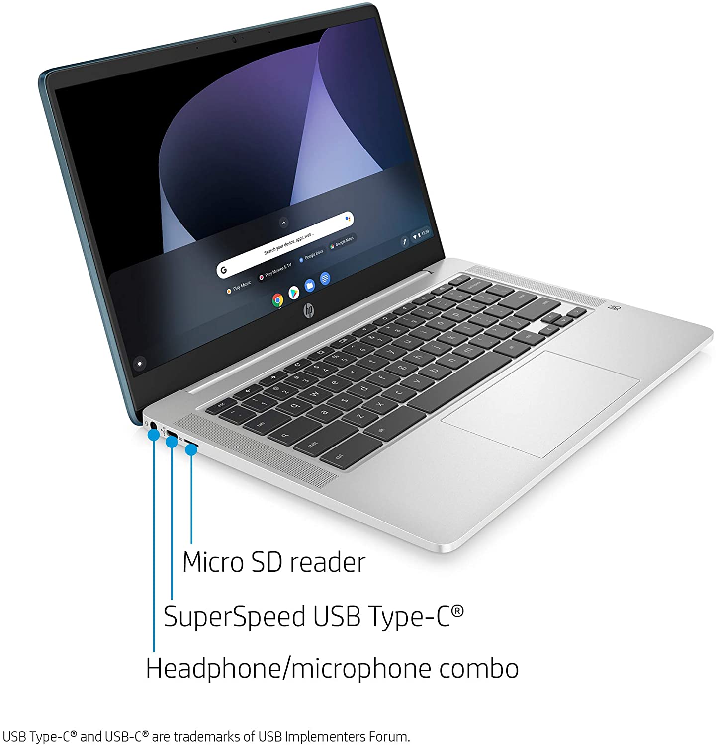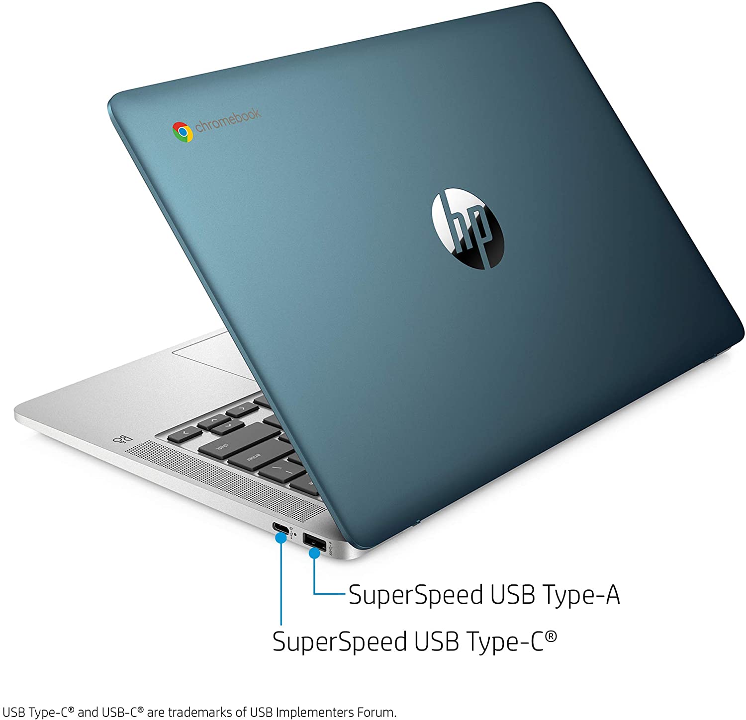 HP Chromebook 14-inch HD Laptop, Intel Celeron N4000, 4 GB RAM, 32 GB eMMC, Chrome (14a-na0070nr, Forest Teal) (Renewed)