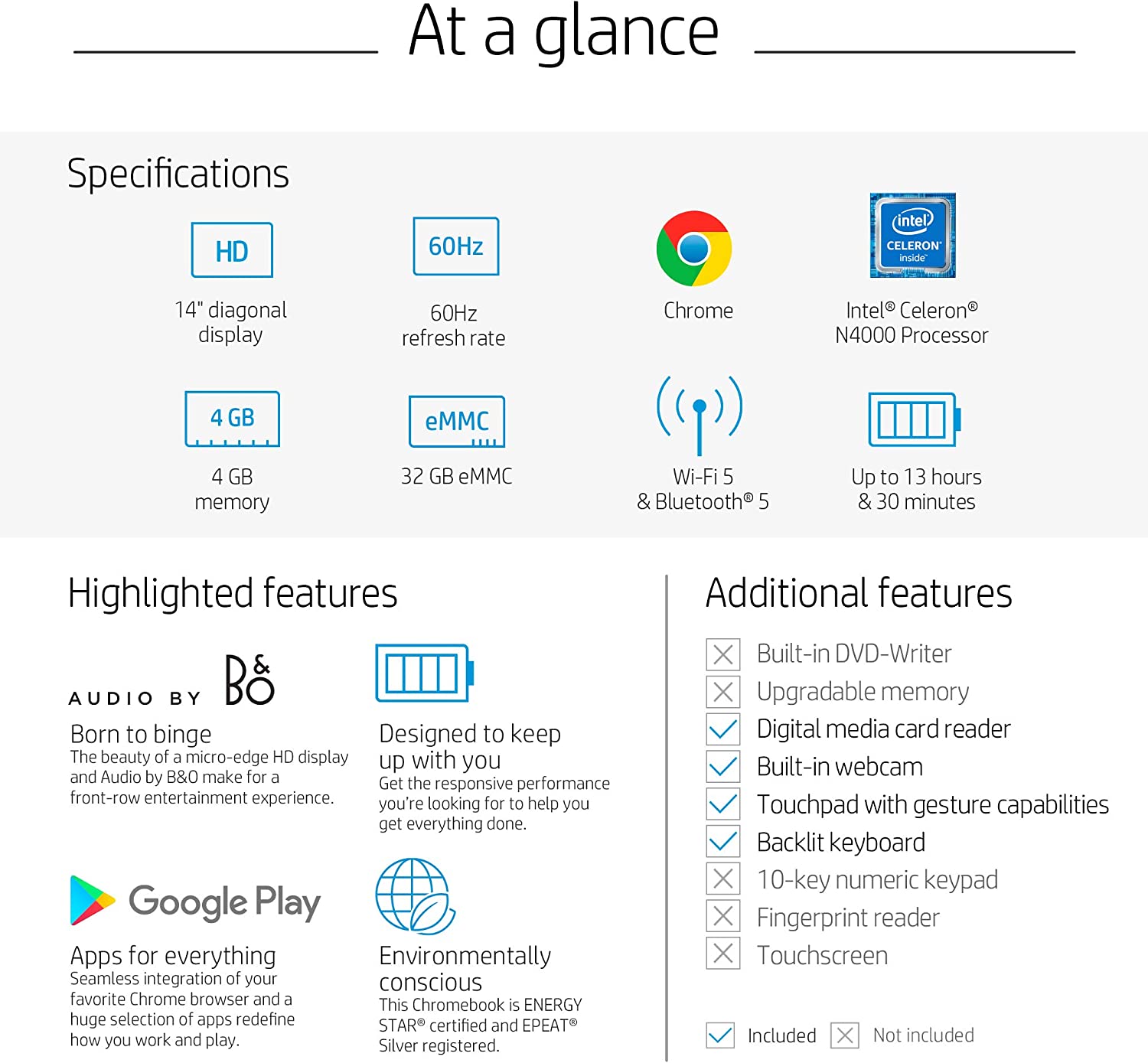 HP Chromebook 14-inch HD Laptop, Intel Celeron N4000, 4 GB RAM, 32 GB eMMC, Chrome (14a-na0070nr, Forest Teal) (Renewed)