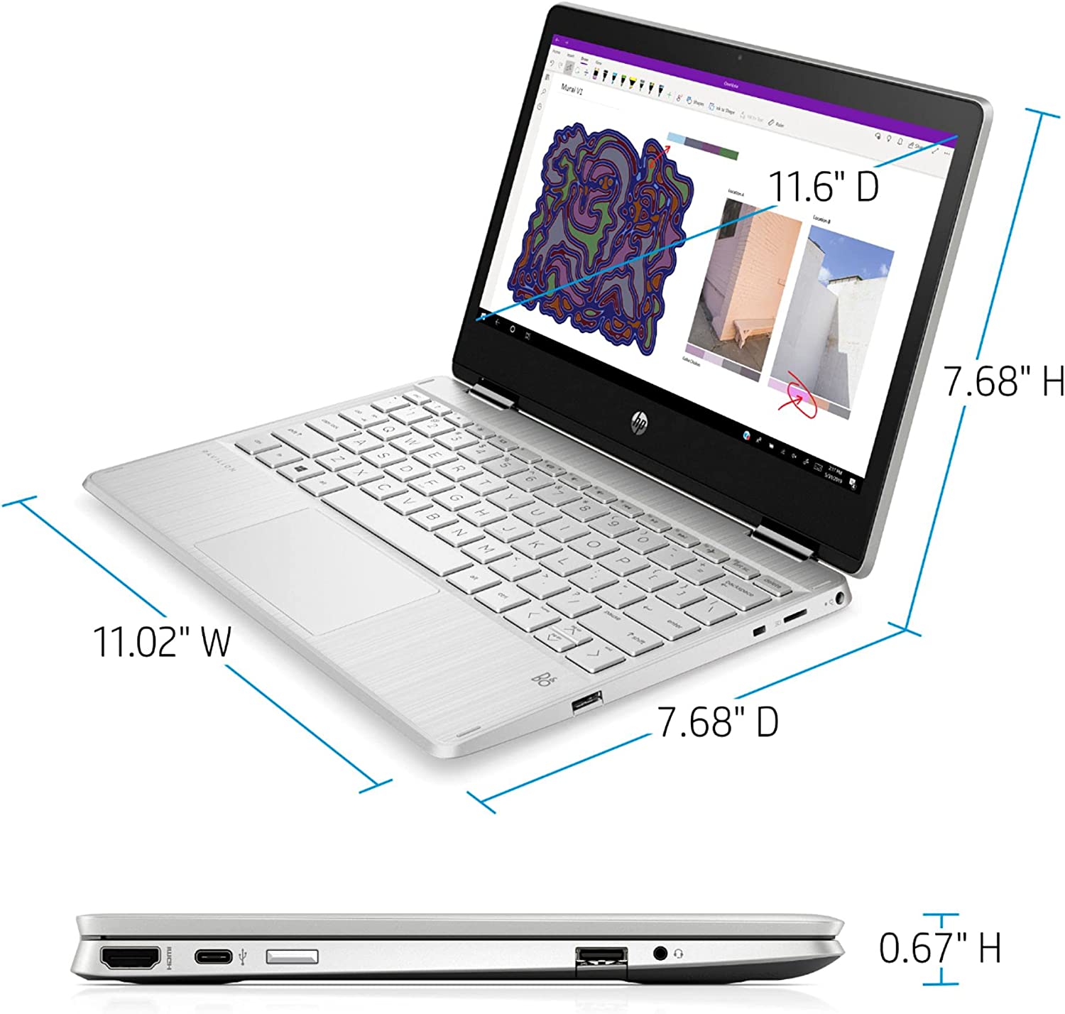 HP Pavilion x360 Convertible 2-in-1 Laptop: Work or enjoy entertainment anywhere with this lightweight HP Pavilion convertible laptop. The Windows 10 Home OS and 128GB solid-state drive offer rapid boot times and responsiveness, while Bluetooth technology supports wireless devices for convenience. This HP Pavilion convertible laptop delivers an immersive media experience with an 11.6-inch HD touchscreen and high-quality B&O speakers.