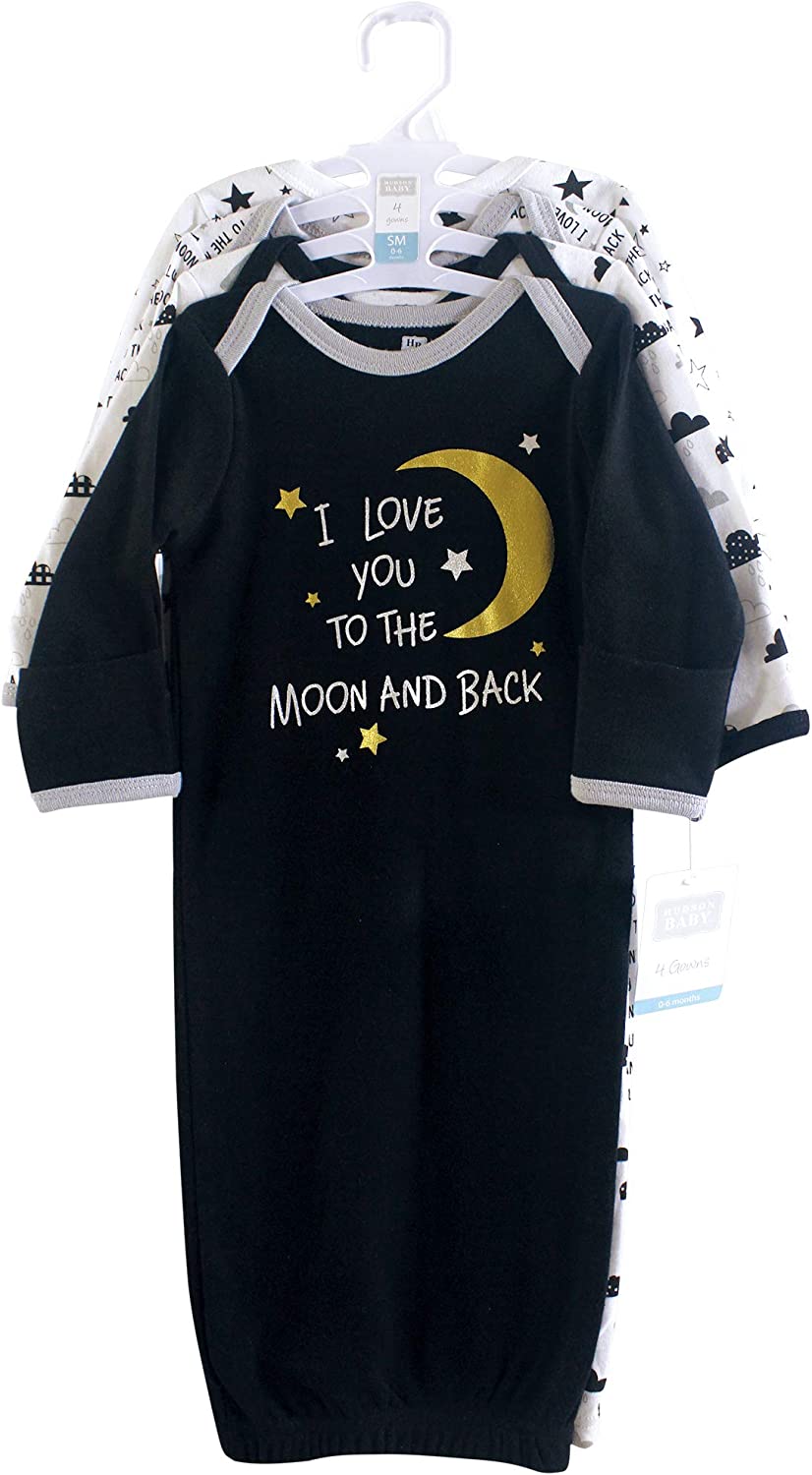 Hudson Baby cotton gowns are super comfortable and cozy and feature playful patterns for sweet dreams. An elastic band at the bottom and a lap neck make dressing and diaper changes simple.