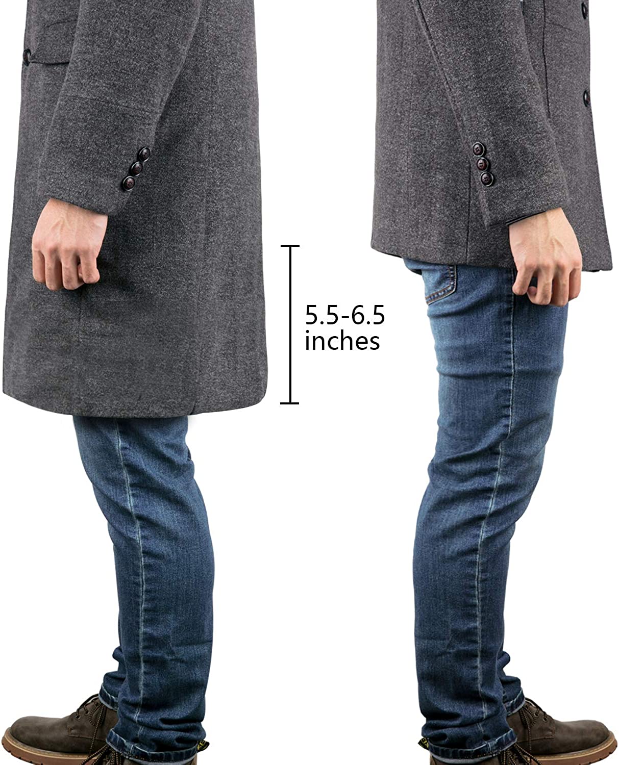 INVACHI Men's Slim Fit Winter Warm Short Woolen Coat Business Jacket with Free Detachable Soft Touch Wool Scarf
