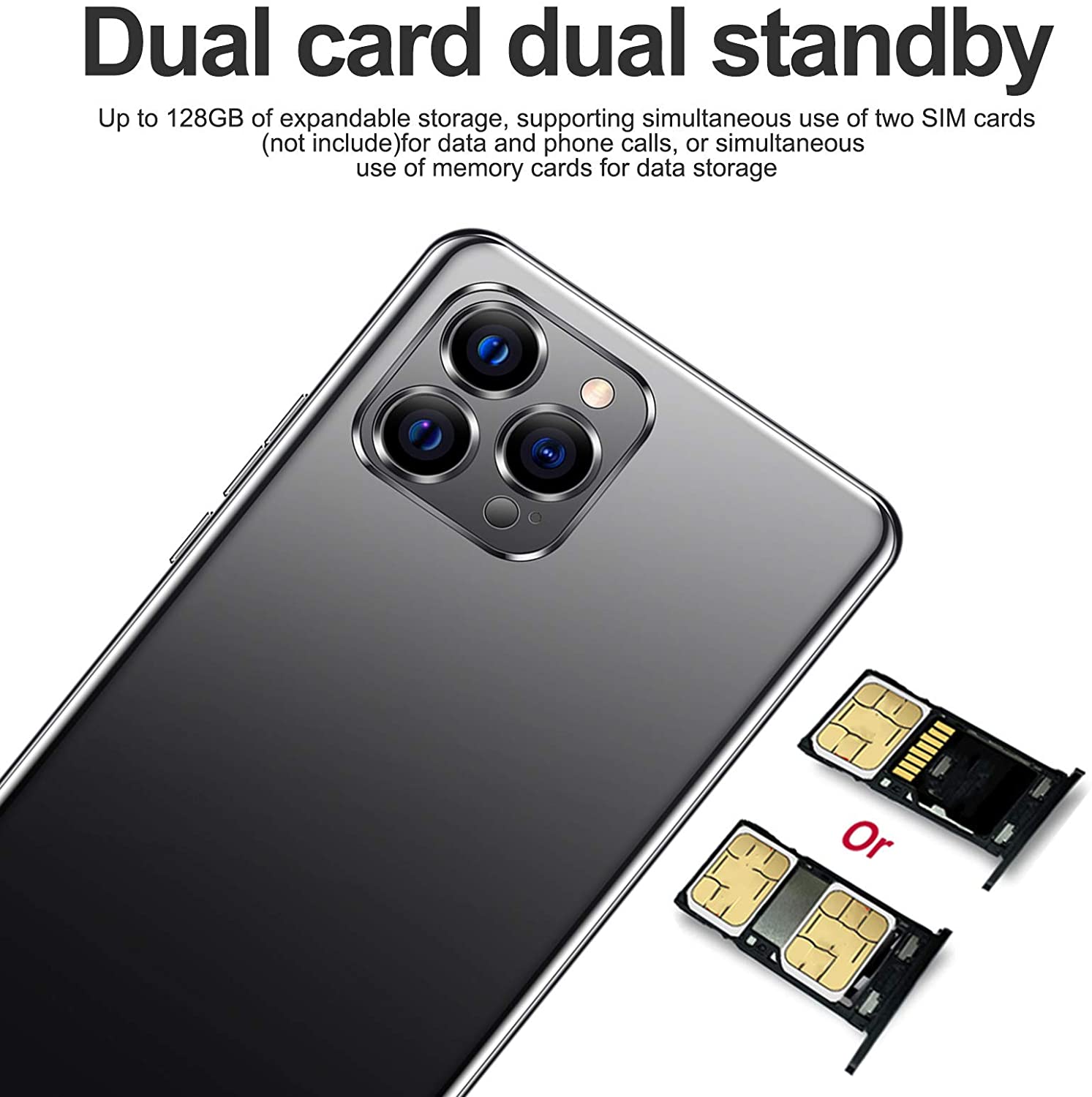 IP12 PRO Unlocked Android Smartphone ,6.26in Waterdrop Full Screen Dual SIM Cell Phone ,Ultra Thin Mobile Phone Supports Face Fingerprint Unlocking ,Quad Core CPU ,Triple Rear Camera Black