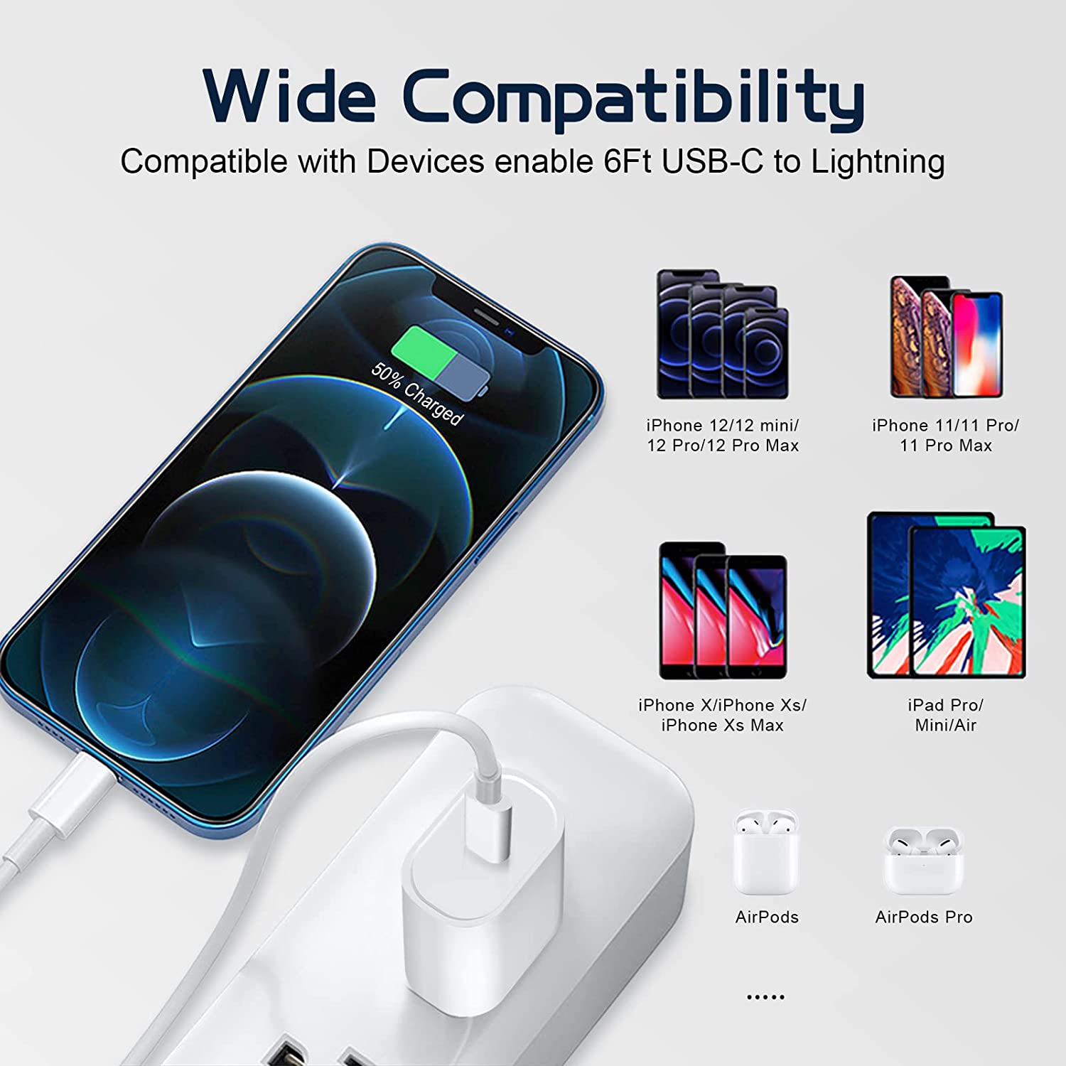 iPhone 12 13 Fast Charger,【Apple MFi Certified】 2-Pack 20W Type C Fast Charger Block with 6FT USB-C to Lightning Cable Compatible with iPhone 13/13 Pro/12/12 Pro/12 Pro Max/11/Xs Max/XR/X, iPad