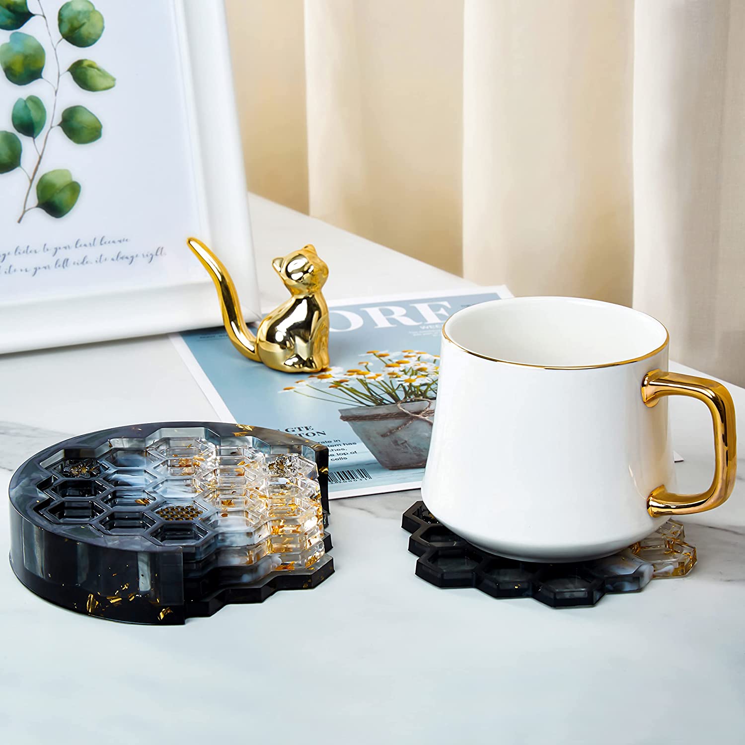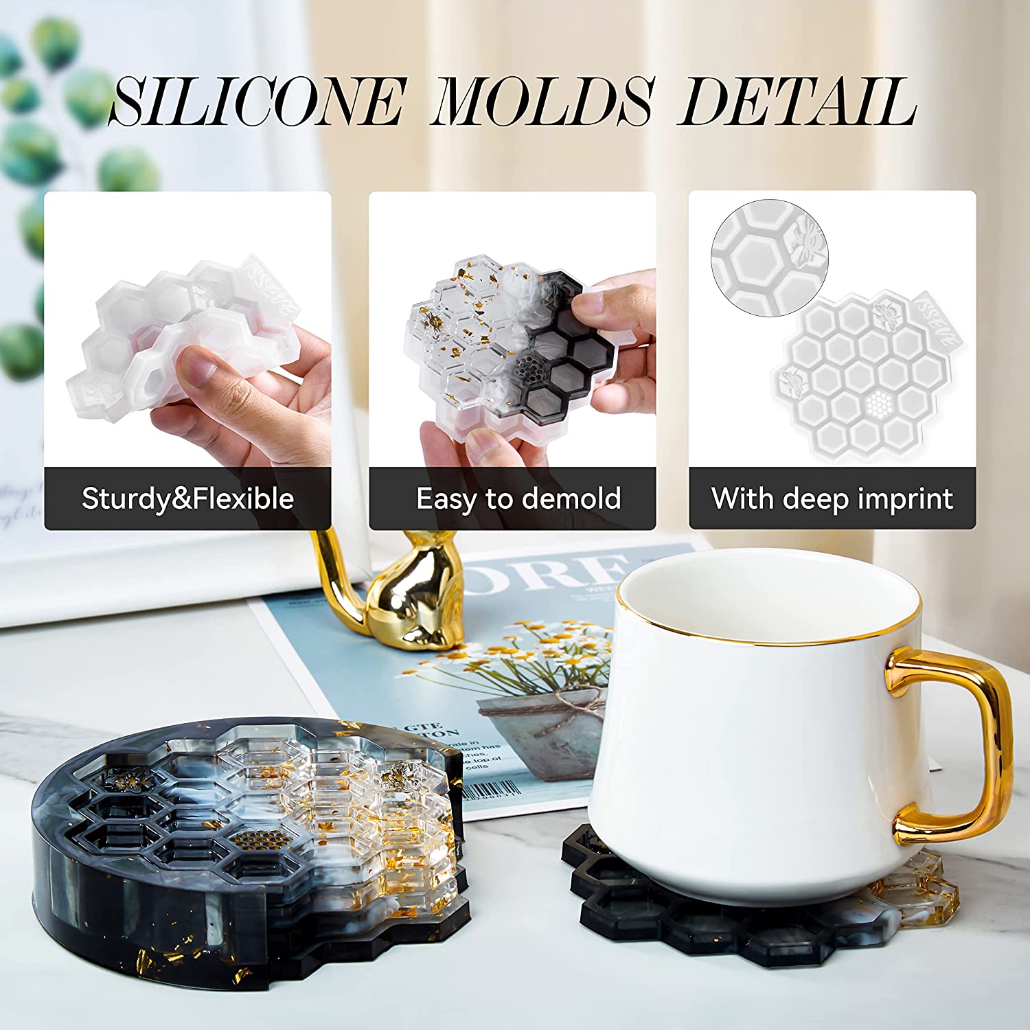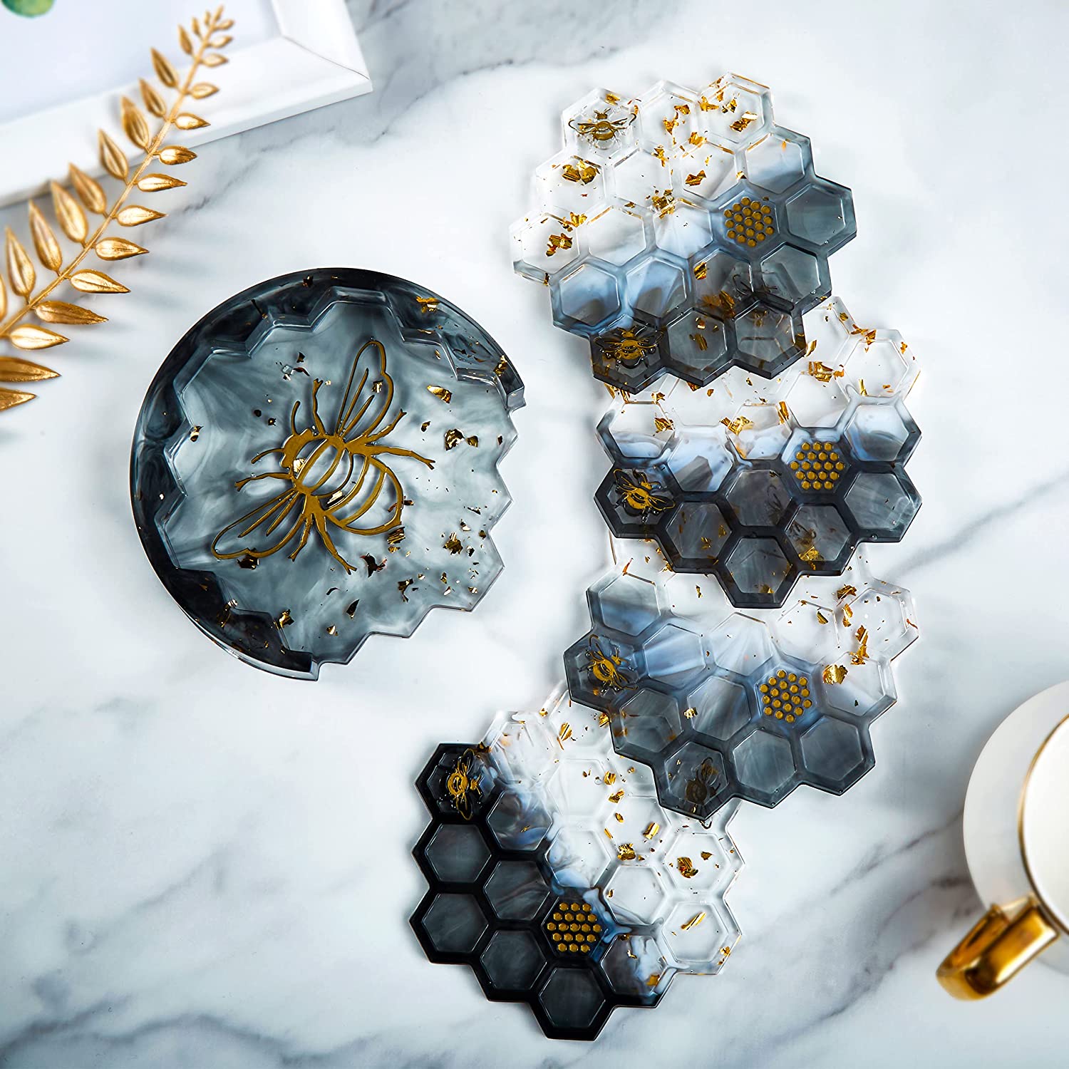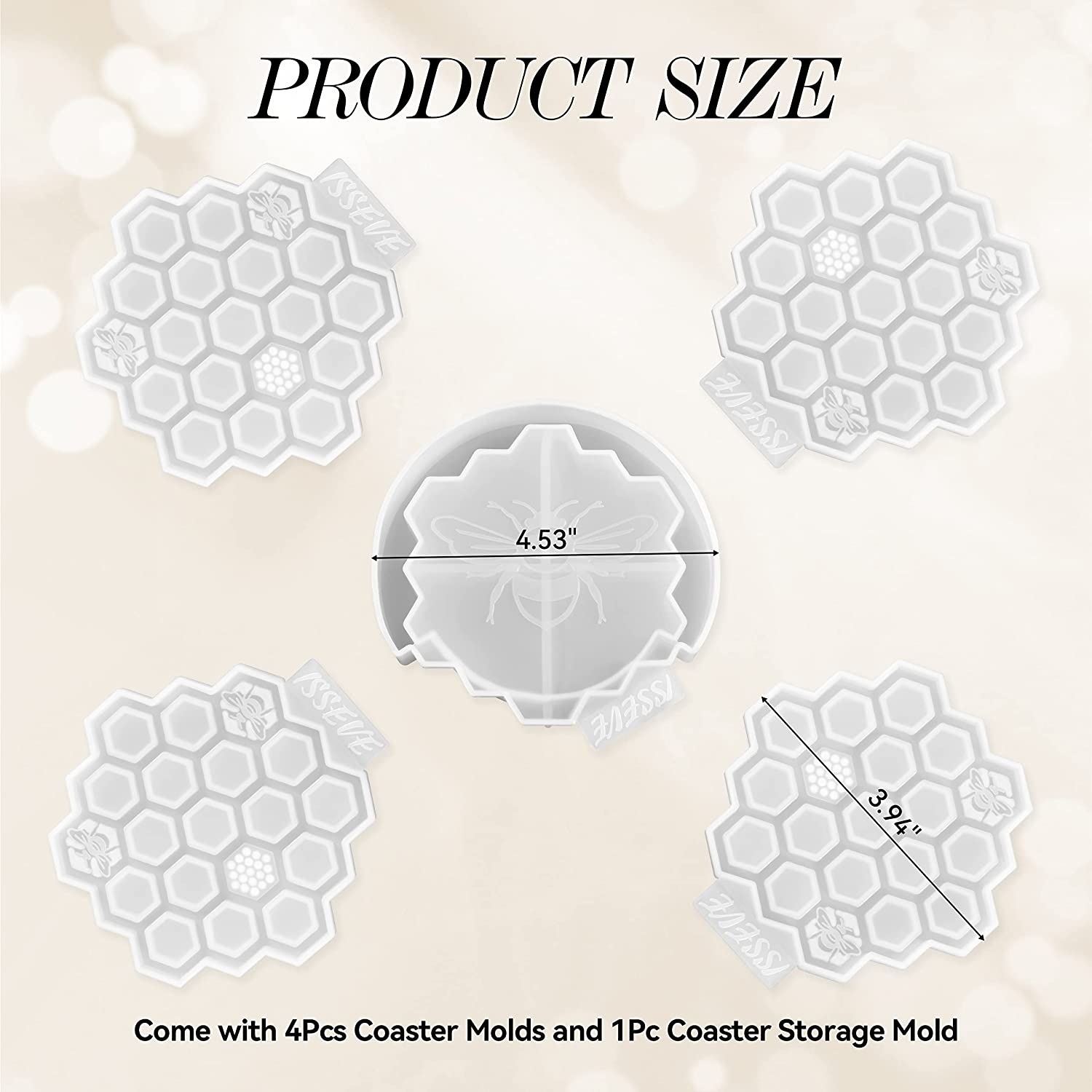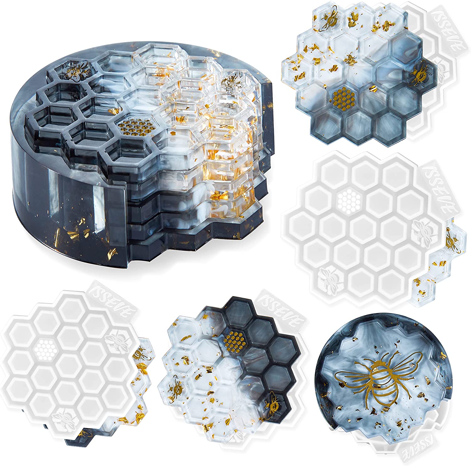 ISSEVE Honeycomb Coaster Resin Molds Set, 4Pcs Coaster Silicone Molds for Epoxy Resin with Storage Box Mold, Coaster Molds for Resin Casting, Epoxy Mold for DIY Resin Crafts, Cup Mats, Home Decoration