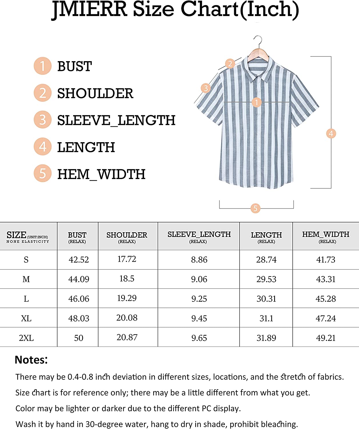 JMIERR Men's Casual Short Sleeve Button-Up Striped Dress Shirts Cotton Shirt