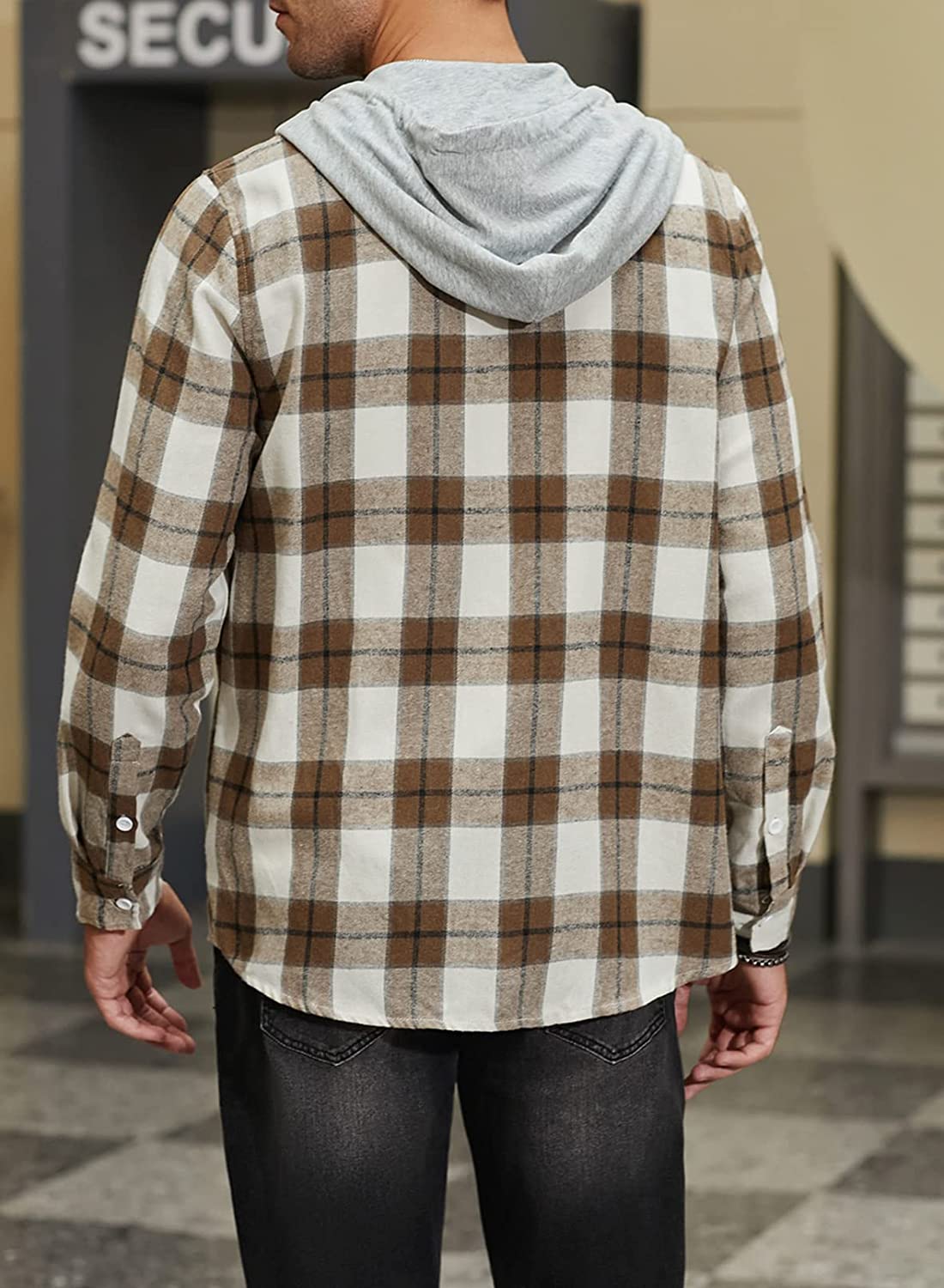 JMIERR Mens Flannel Plaid Hoodie Shirts Casual Button Down Long Sleeve Lightweight Shirt