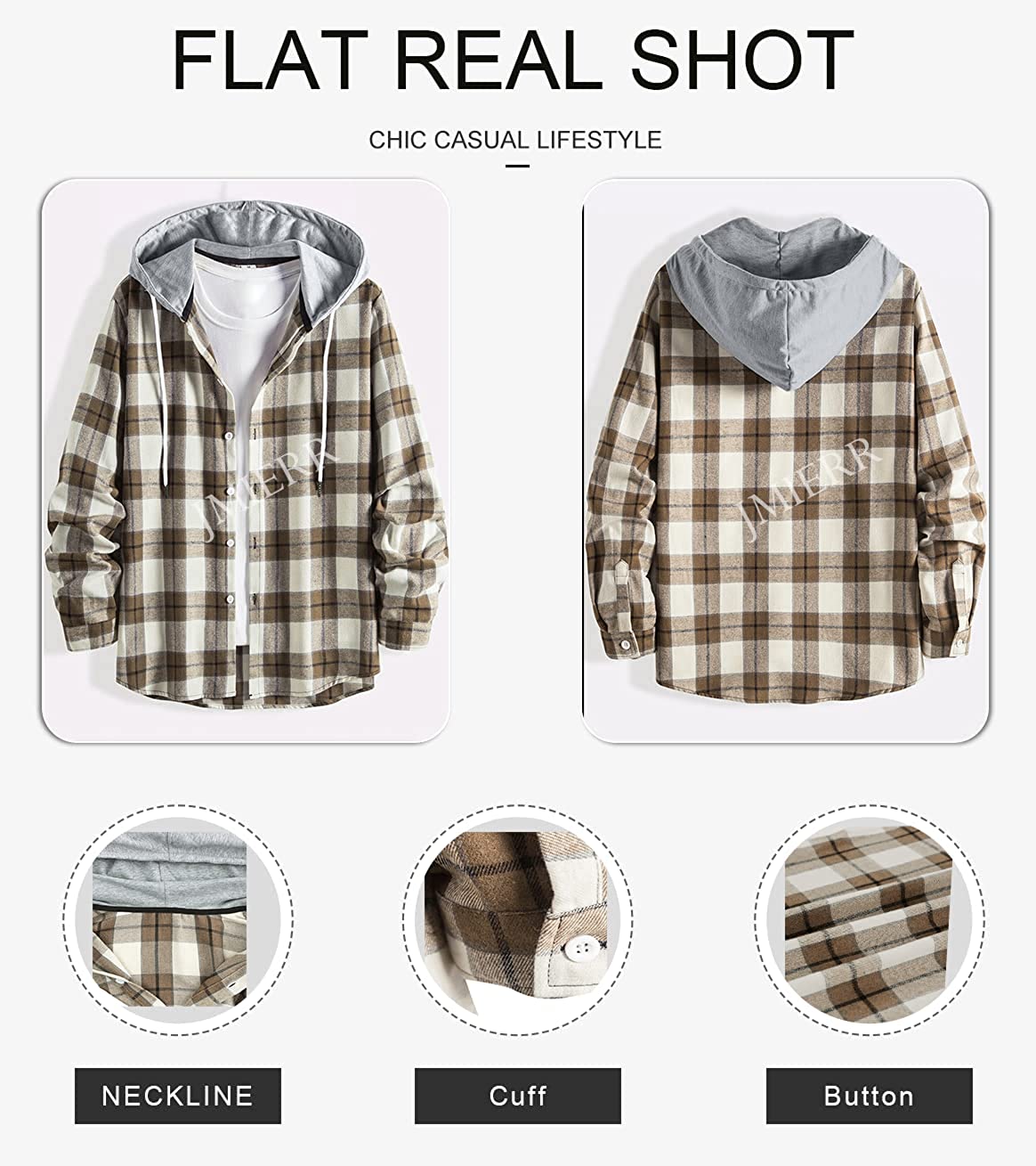 JMIERR Mens Flannel Plaid Hoodie Shirts Casual Button Down Long Sleeve Lightweight Shirt