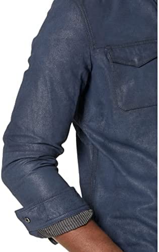 JOHN VARVATOS Men's Izzy Leather Shirt Jacket, Concealed Snaps