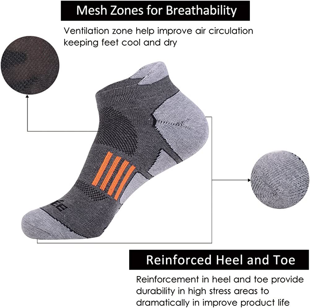 JOYNÉE Men's 6 Pack Athletic No Show Performance Comfort Cushioned Low Cut Running Tab Socks