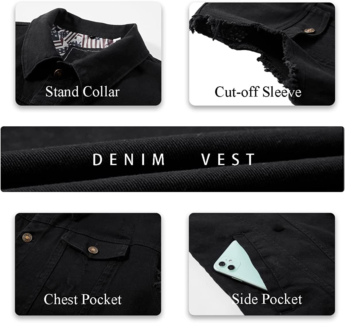 JYG Mens Casual Denim Vest Classic Trucker Button-Down Sleeveless Jean Jacket