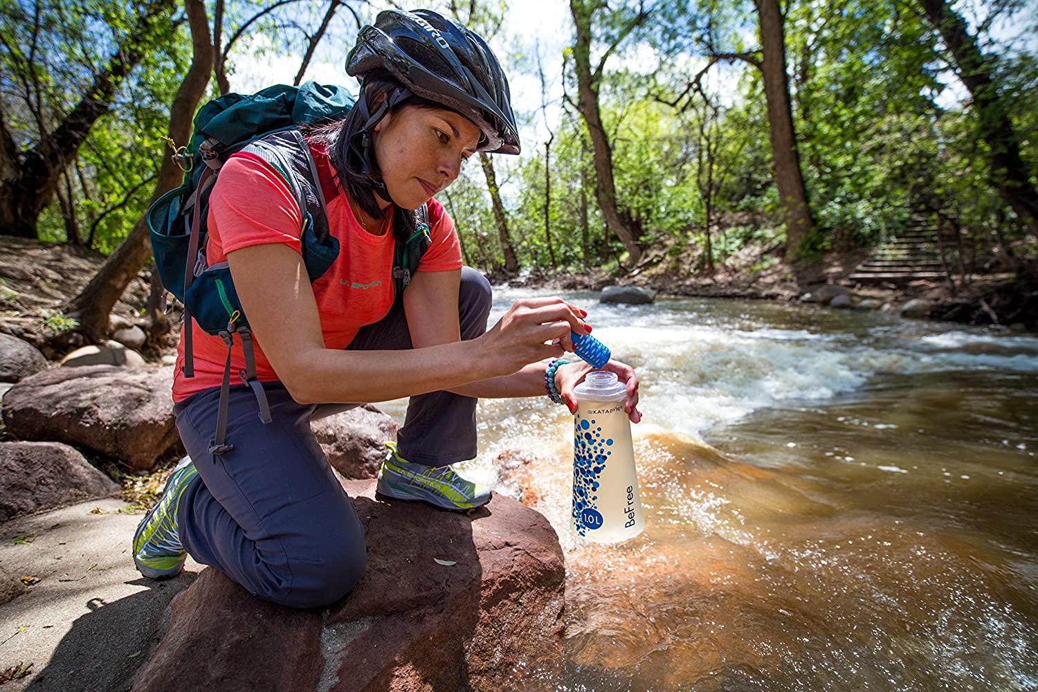 With the Katadyn befree water filtration system, you no longer have to worry about where your next drink will come from. Just fill up the flask and let the ez-clean membrane do the work. Gently squeeze the flask for instant refreshment. Maintain the ez-clean membrane quickly and easily for longer life and more enjoyment. Simply fill the flask with water, attach the cover and Shake free the debris. Or, remove the Filter from the flask and swish in any lake, River or stream. And when you're ready to hit the road, the collapsible flask packs small to fit into tight spaces. Just smash, stash and go!.Hydrapak soft flask is longer lasting, rugged, high-tech, flexible, bpa-freeno backflushing and no clumsy tools. Simple Shake or swish the ez-clean membrane in the water and be on your way0.1 micron hollow fiber technologyfor solo usesuitable for cloudy waterlightweight and portableflow rate: 2 liter per minutetested to 1000 L, depending on water qualitywt. 2.3 oz (63g)size: 10.0 x 4.25 x 3.0 in (25.4 x 10.8 x 7.7 cm).