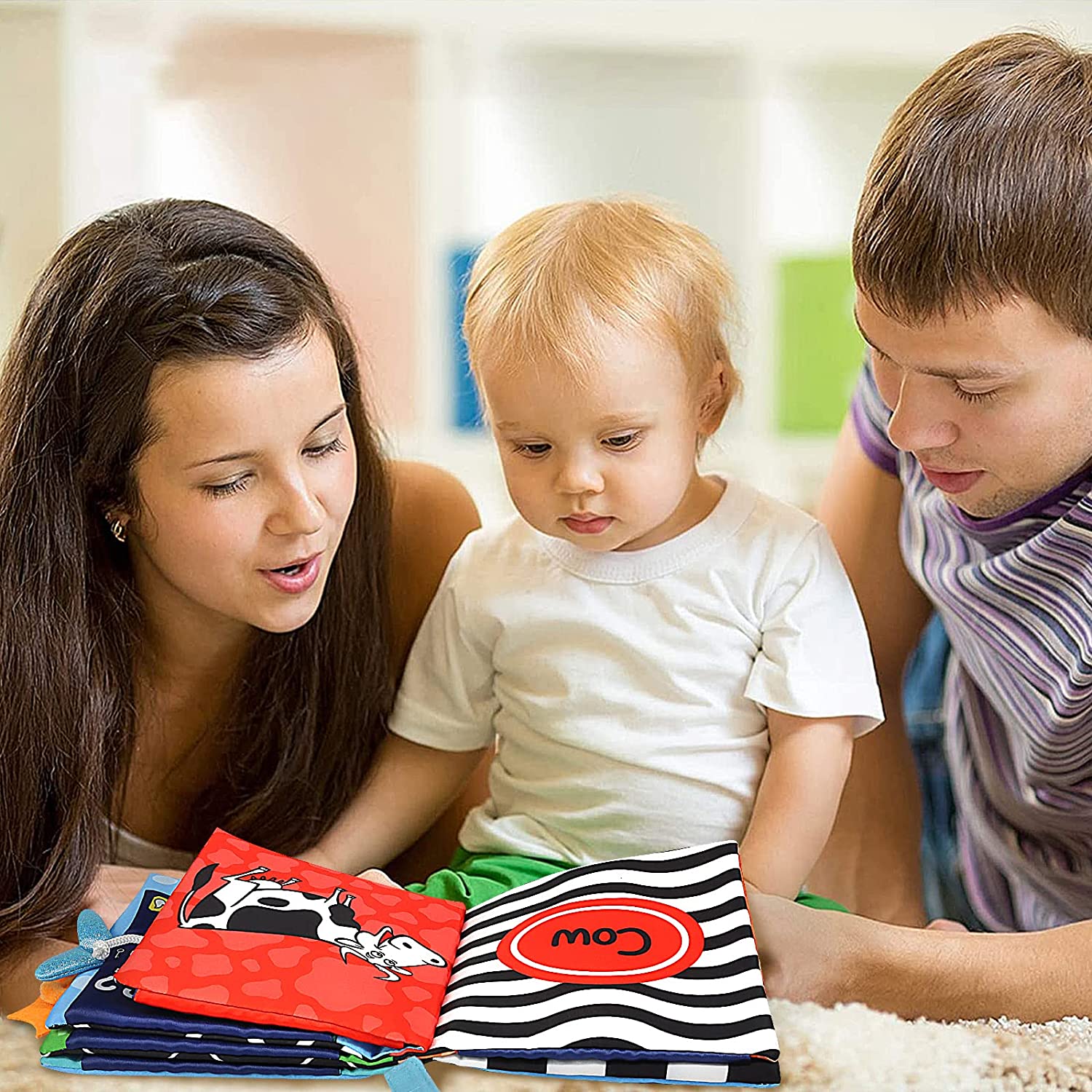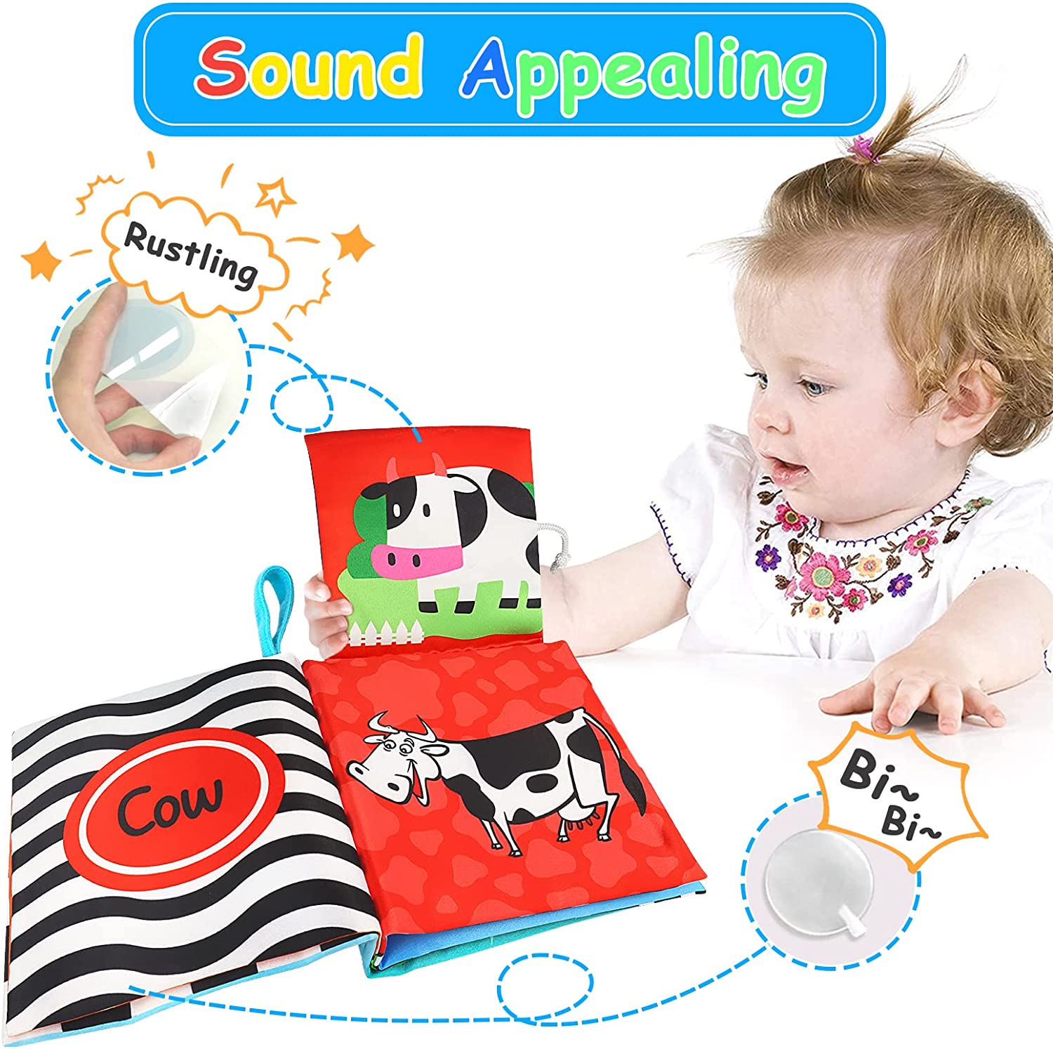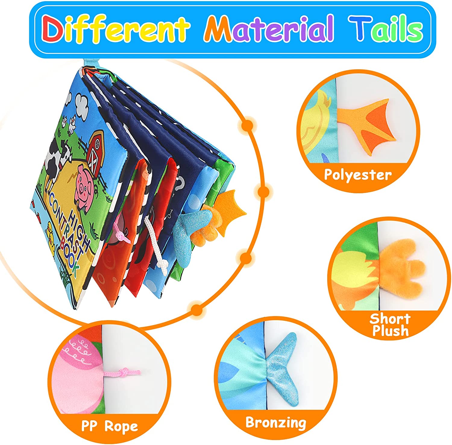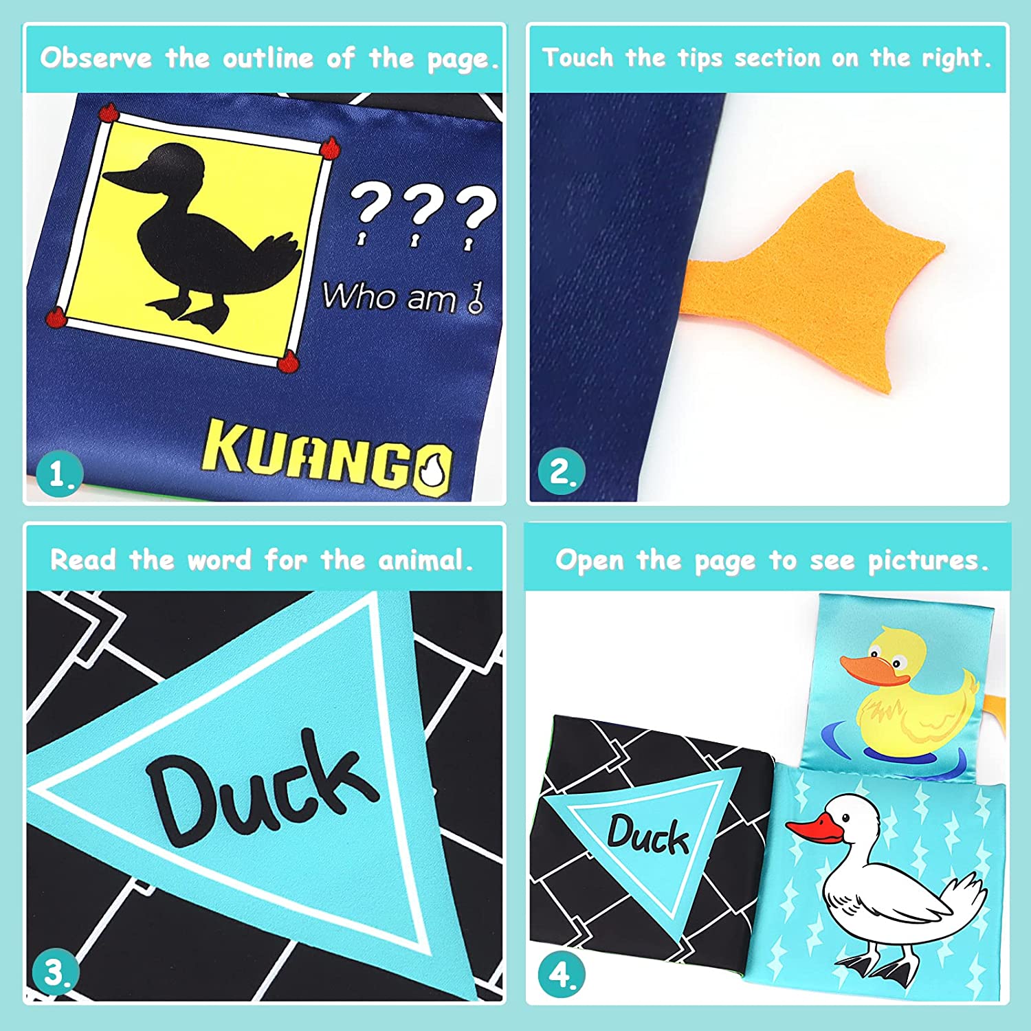 KUANGO Baby Books Toys 0-6 Months, Touch and Feel Cloth Book Non Toxic High Contrast Black and White Crinkle Soft Book Toys for Infants Toddler 1 Year Old Boys & Girls (First Book)