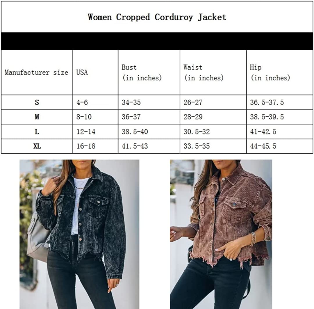 LCRRRN Womens Cropped Corduroy Jacket Casual Button Down Shacket Coat Fringe with Frayed Hem