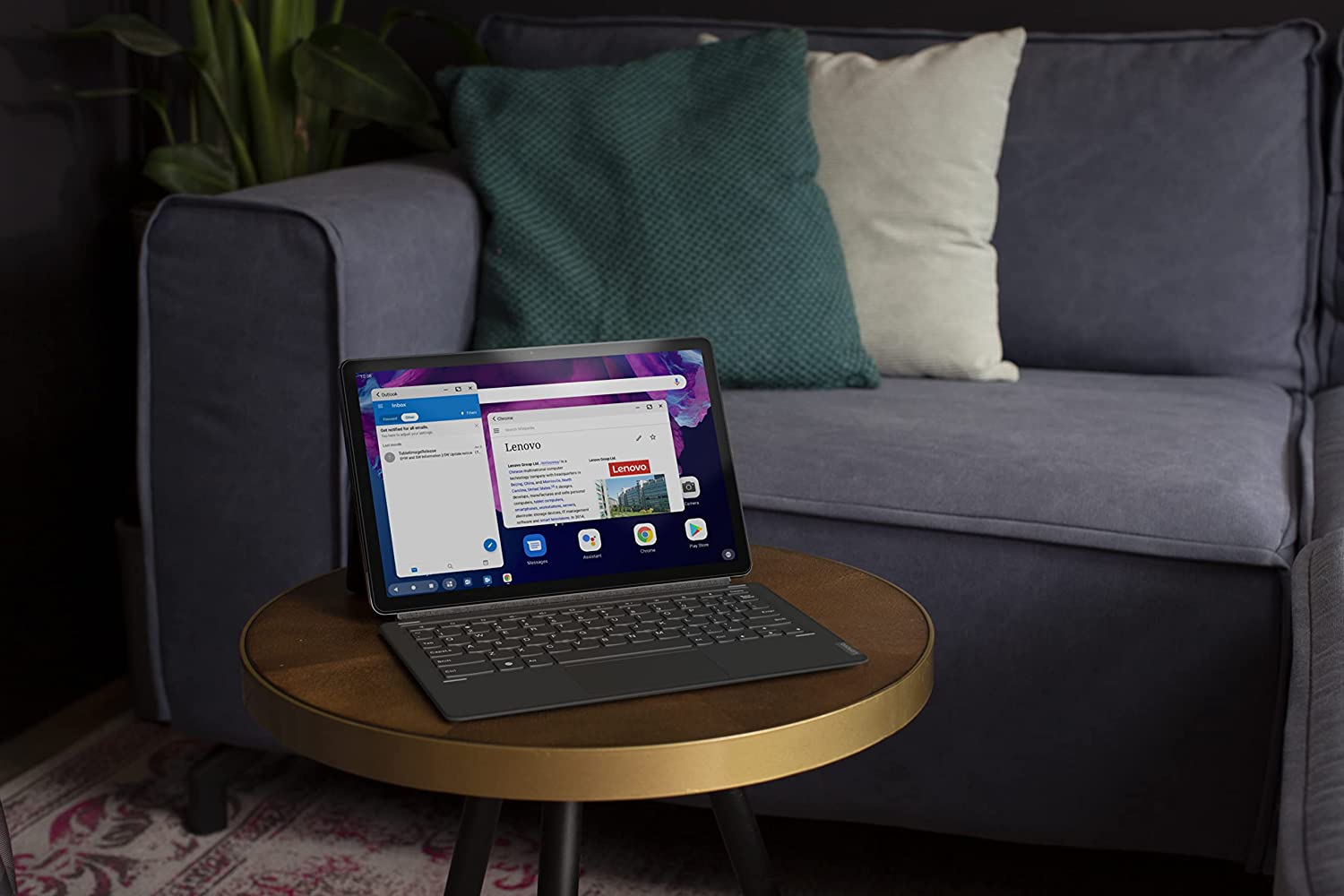 Running the Android™ 11 operating system, the Tab P11 Plus tablet offers Bluetooth® and Wi-Fi wireless connectivity and a USB Type-C™ 2.0 port for data transfer and charging. You can also use the USB-C port to attach a compatible headset. It comes with a detachable keyboard, making it easy to interact with the tablet by typing or using the touch screen. Use the front or rear camera to take photos or enjoy a family video chat – this Android tablet comes with a dual microphone array and quad speakers so you'll experience crisp, clear video and sound. You can even log in quickly and easily with Face Unlock.