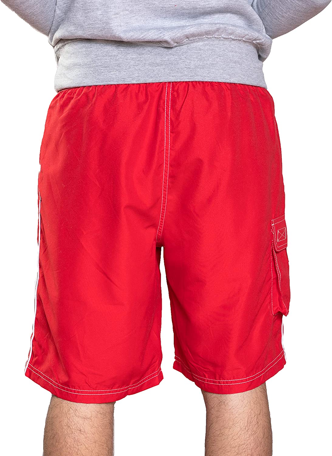 LIFEGUARD Officially Licensed Red Men's Board Shorts Swim Trunks with Side Pocket, Men and Boys, Great for Beach & Pool