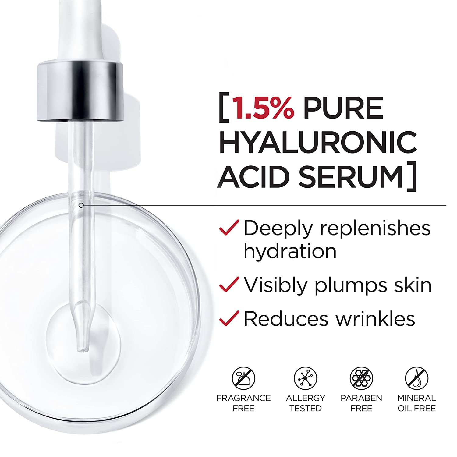 Revitalift Derm Intensives 1.5% Pure Hyaluronic Acid Serum with Vitamin C is a derm-validated, anti-aging serum to intensely hydrate, replump, reduce wrinkles and moisturize for dewy-looking skin.