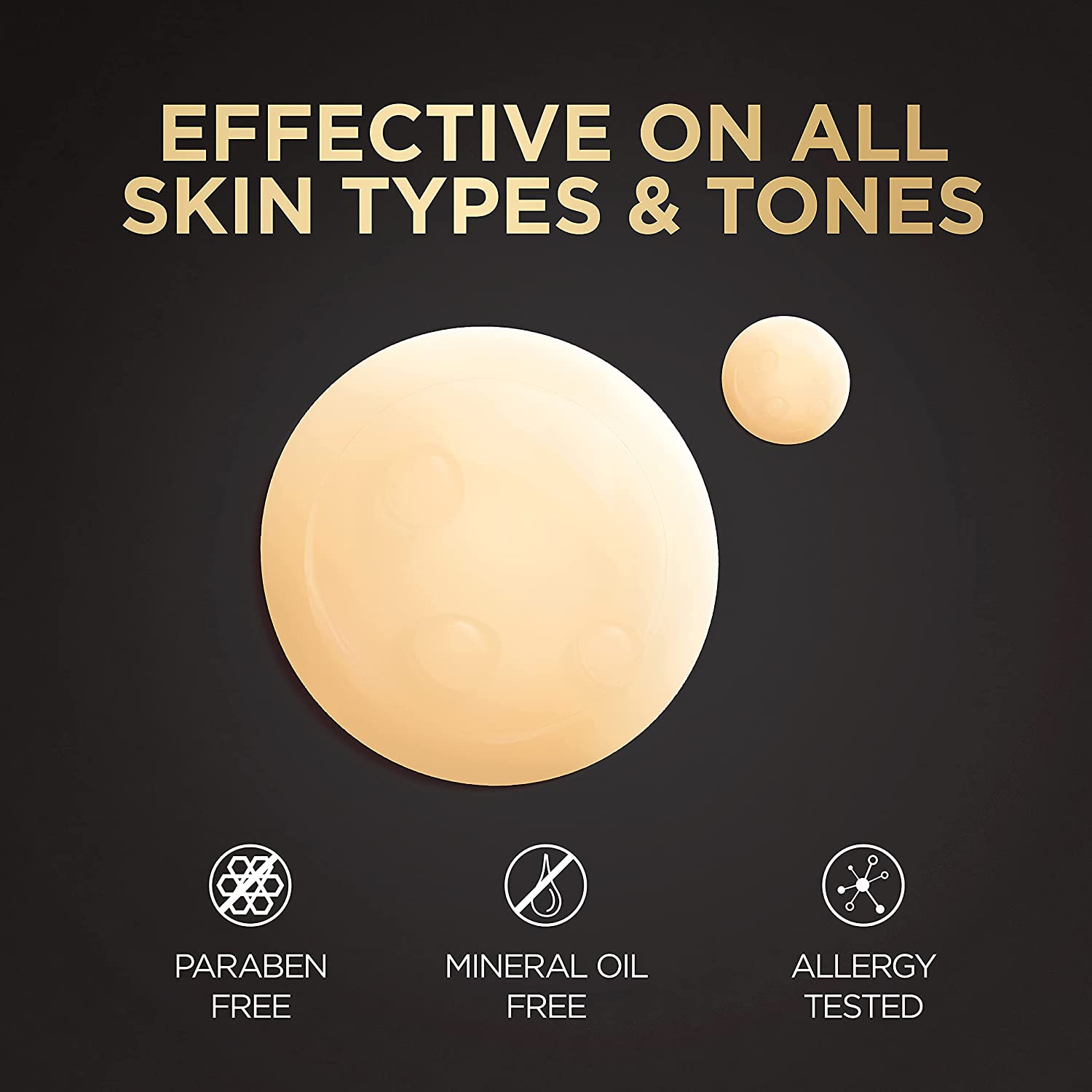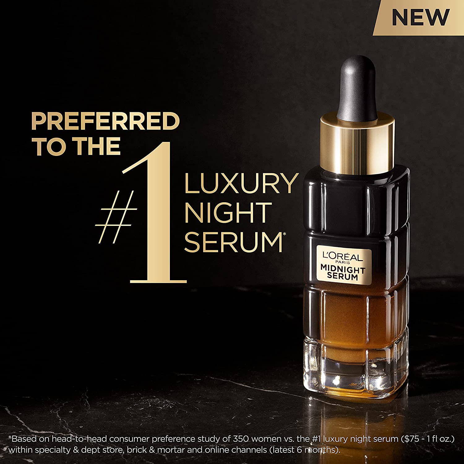 Give your skin a new beginning! Reveal Millions Of New Surface Cells, Visibly Younger Skin: Age Perfect Cell Renewal Midnight Serum sets a new standard for luxury serums. In fact, Women Prefer It Over The #1 Luxury Night Serum*. Formulated with an exclusive Antioxidant Recovery Complex, this powerhouse anti-aging serum works at night when skin reaches its peak of cell renewal. Millions of new cells are revealed for visibly smoother, more radiant and younger skin. Effective For All Skin Types & Tones, it is made without parabens or mineral oil, and is allergy tested - suitable for even sensitive skin. What Is An Antioxidant Recovery Complex? Our exclusive Antioxidant Recovery Complex helps boost skin's renewal overnight by combining a powerful, L'Oreal patented antioxidant—derived from bitter orange—and Vitamin E to help reinforce skin's barrier. This breakthrough serum replenishes skin’s antioxidant levels at night when it is most receptive to repair. Our formula also contains Hyaluronic Acid—a powerful hydrating ingredient that helps lock in moisture. Smooth Wrinkles, Firmer, More Radiant Skin: After 1 use, skin feels refreshed, softer, and smoother. In 1 week, skin appears brighter, more luminous and younger. Over time, wrinkles are smoothed, skin looks firmer and more radiant. Indulgent, Luxurious Formula: Each drop of this lightweight serum provides intense hydration while leaving skin luxuriously soft to the touch. It absorbs quickly with a non-greasy, non-sticky finish and won't clog pores. Custom Designed, Glass Bottle: With its sleek, modern design and gold finishes, this serum bottle was meticulously crafted to become an icon! Its beautifully etched glass provides an elevated look and uses recycled and recyclable glass material.