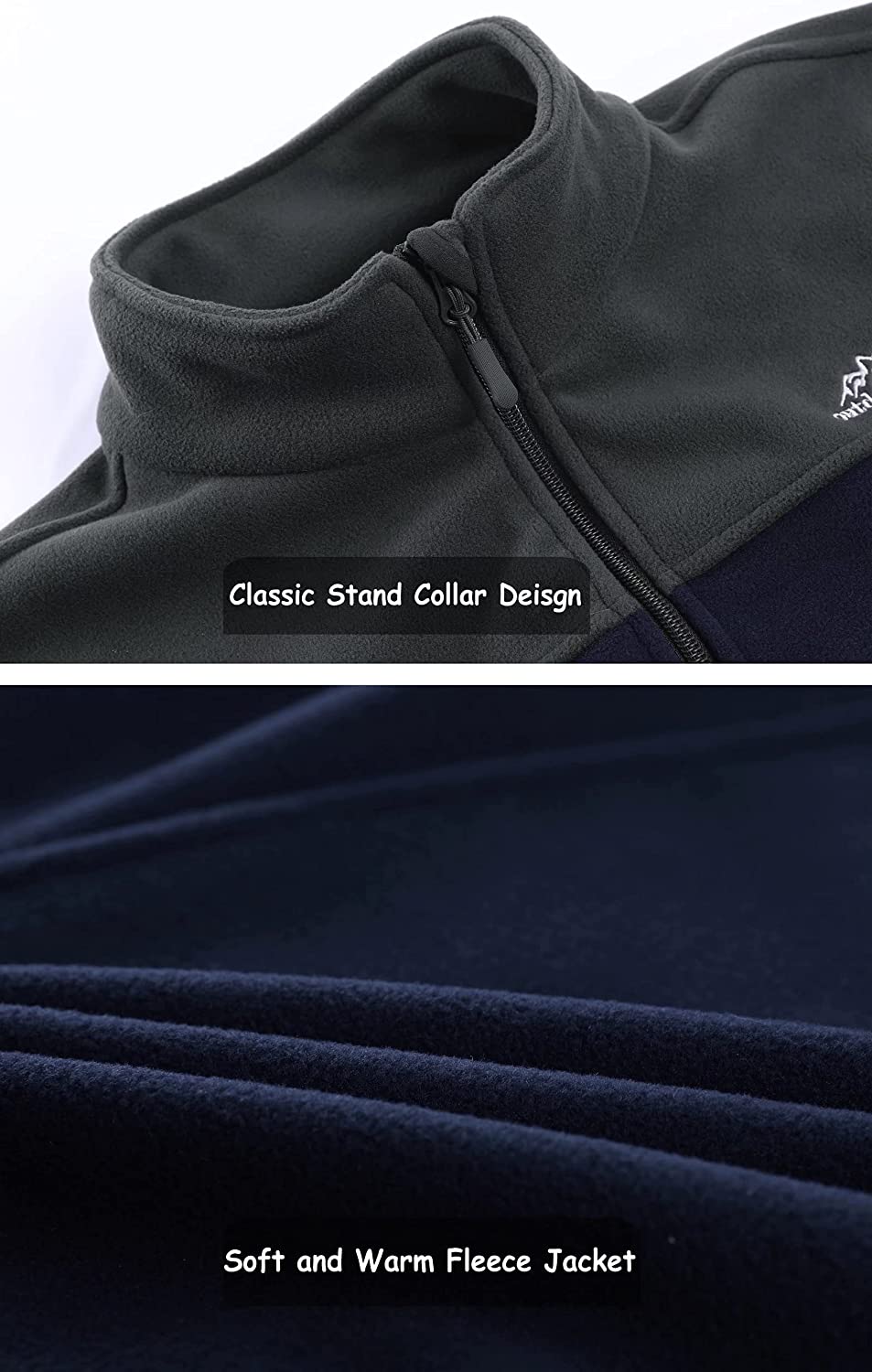 MAGCOMSEN Men's Fleece Jacket Full Zip Stand Collar Windproof Windbreaker Fall Winter Jacket with Pockets