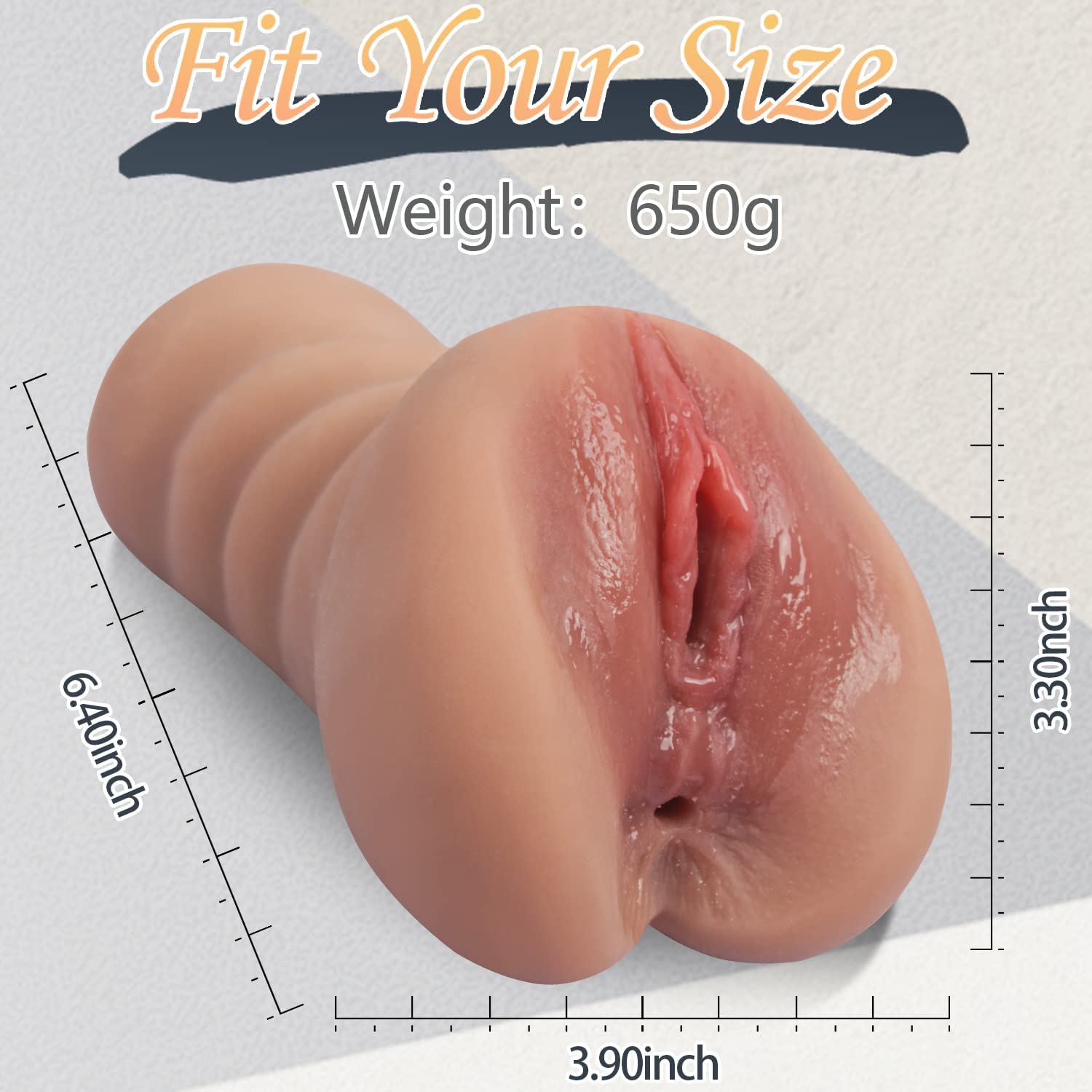 Male Masturbator 650G Lifelike Pocket Pussy Portable Men Stroker Clitoris Anal Sex Toy Masturbators Two Separate Realistic 3D Channel Textured Vagina Tight Anus Adult Toy for Men Masturbation (Flesh)