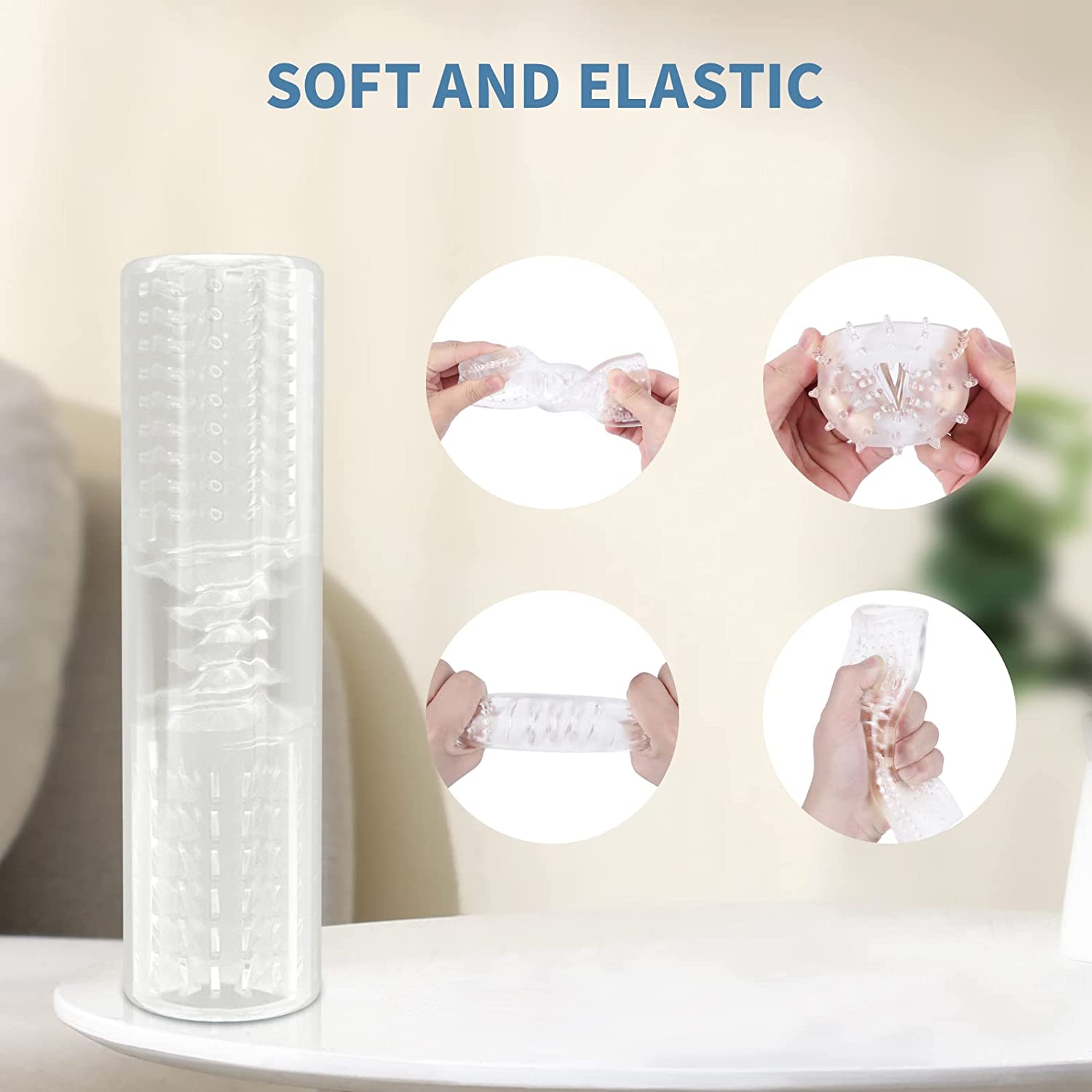 Male Masturbators Cup Crystal Vagina Sleeve Transparent Spiral Textured Tunnel Male Masturbation Stroker Pocket Pussy Adult Sex Toys for Men