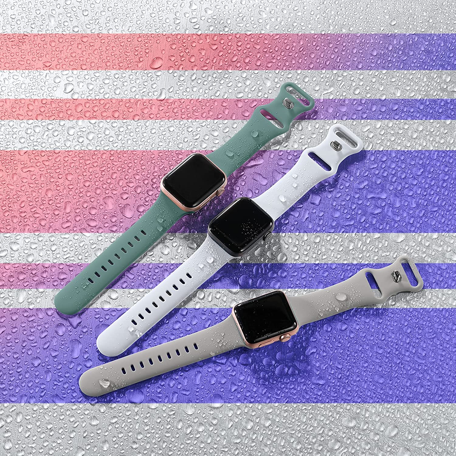 Maledan 6 Pack Bands Compatible with Apple Watch Band 40mm 38mm 44mm 42mm 41mm 45mm Women Men, Soft Silicone Waterproof Sport Strap Replacement Wristbands for iWatch Series 7 6 5 4 3 2 1 SE