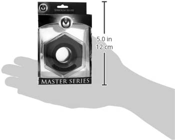 Designed for long lasting erections with its tight fit, this nut is definitely one for the toolbox. Made from firm yet stretchy TPE so it gives just enough to offer maximum erection enhancement while fitting to your body. The hexagonal shape adds a unique look to your cock while helping you maintain an erection for extended sessions. Hex can also be worn as a ball stretcher. Use your imagination. Measurements: 2.3 inches outer diameter, 1 inch inner diameter unstretched, 1.25 inches in width. Material: TPE. Color: Black.