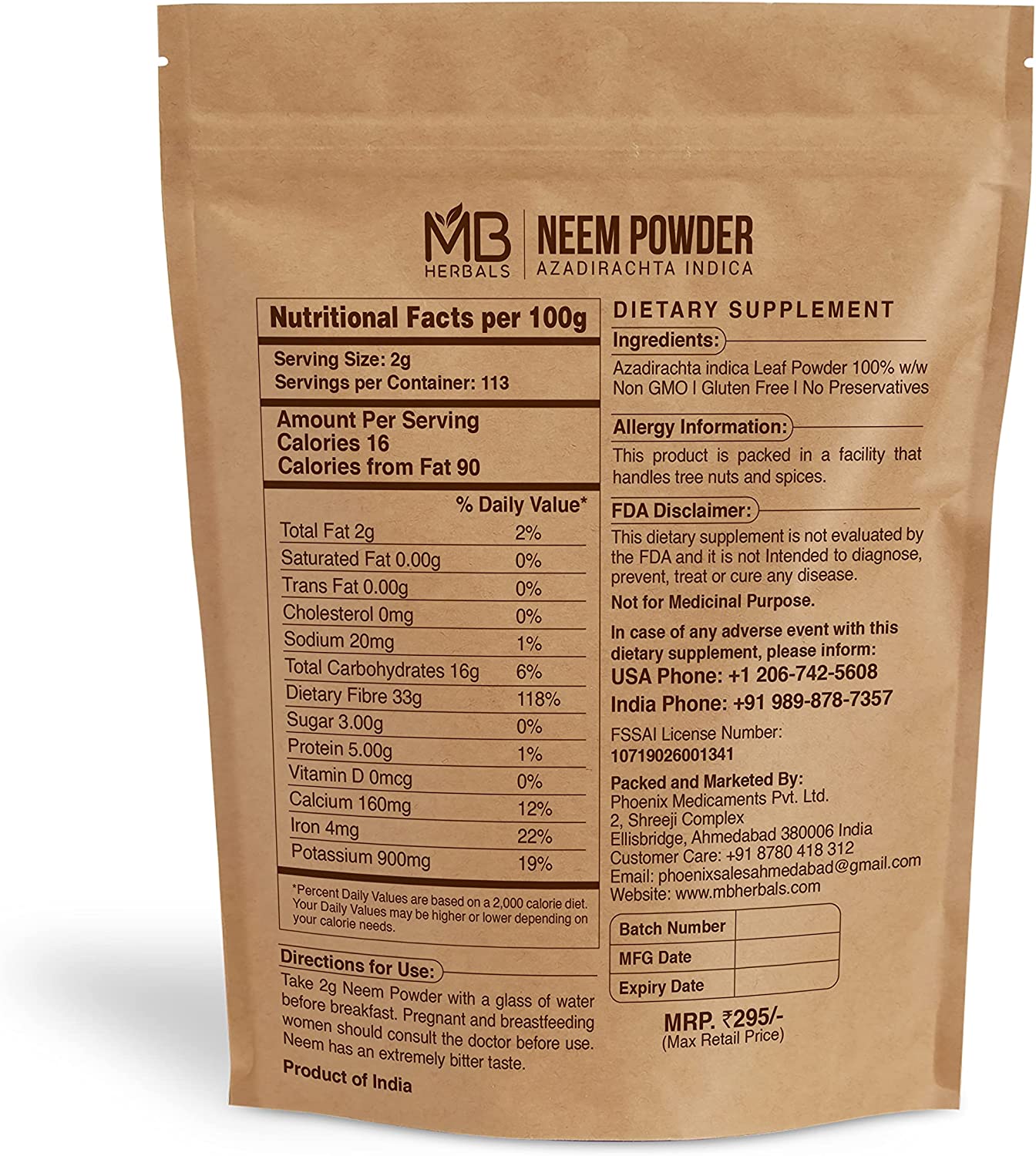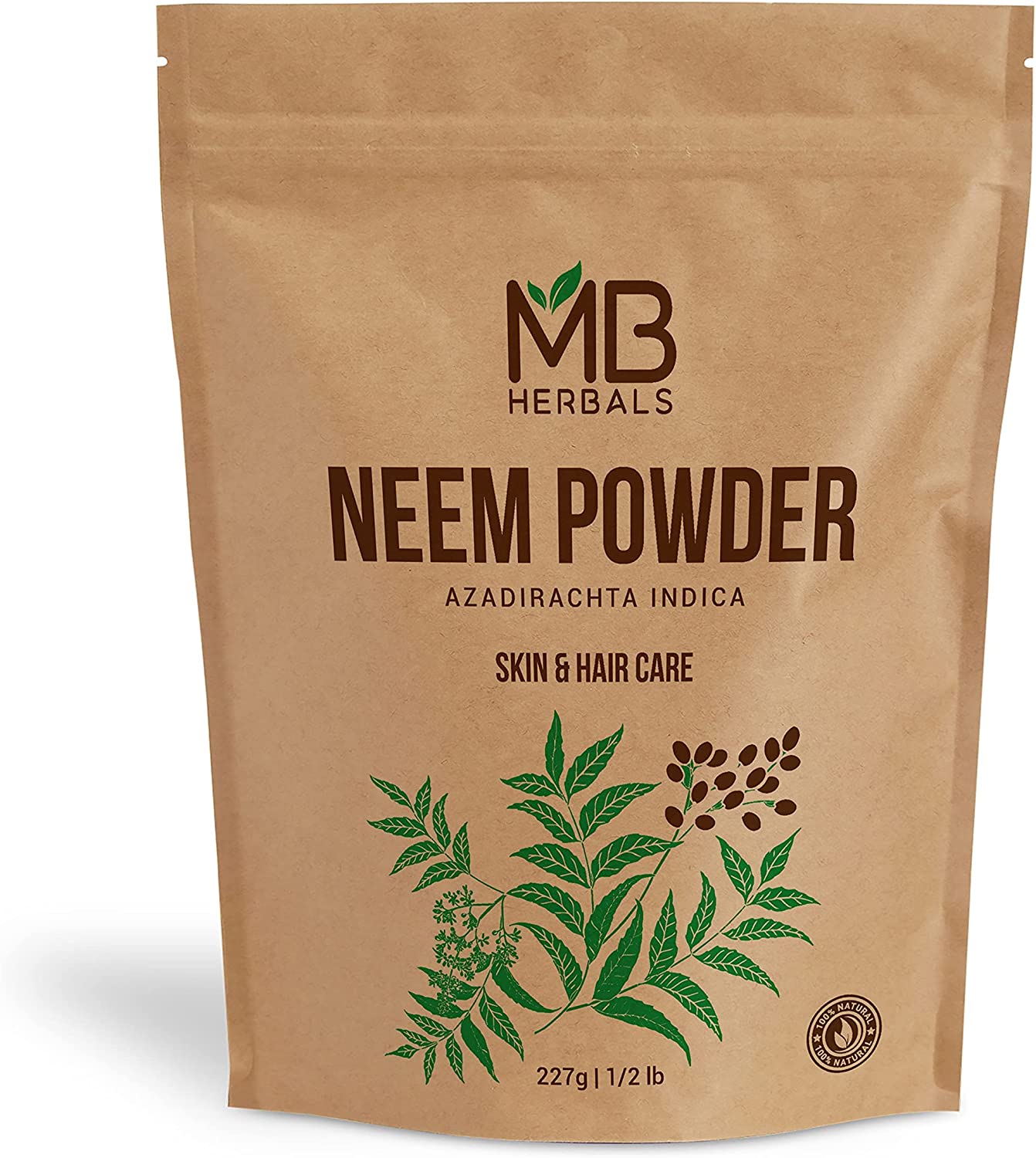 MB Herbals Pure Neem Powder 8 oz | 227 Gram / 0.5 LB Pure Wild-Crafted Neem Leaf Powder | Very Bitter Neem Supplement for Skin Hair & Detox | Azadirachta Indica - Packaging May Vary