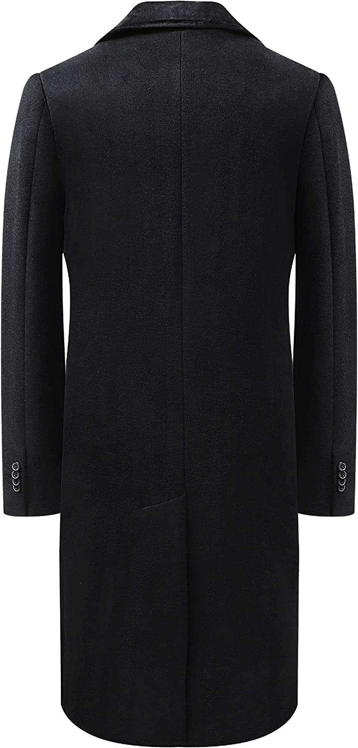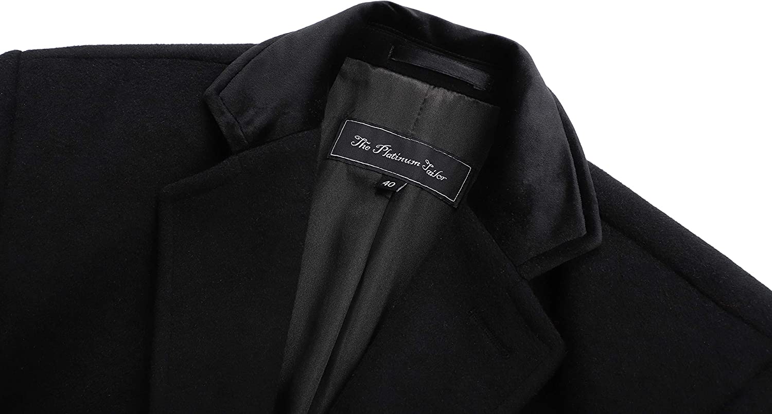 Mens Black Overcoat Wool & Cashmere Covert Warm Winter Mod Cromby Coat Velvet Collar & Black Satin Lining