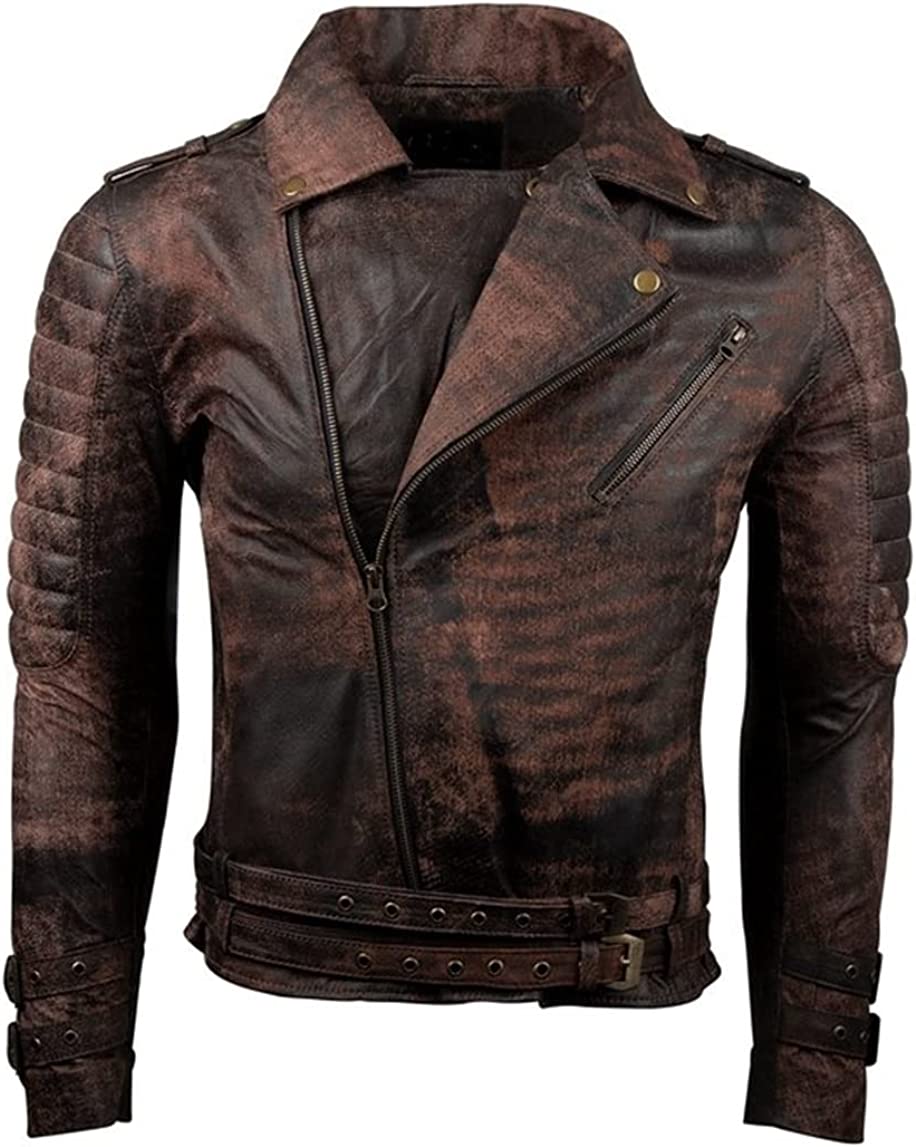 Mens Distressed Motorcycle Leather Jacket | Brown Riding Lambskin Aesthetic Jacket | Vinatge Belted Leather Jacket For Men