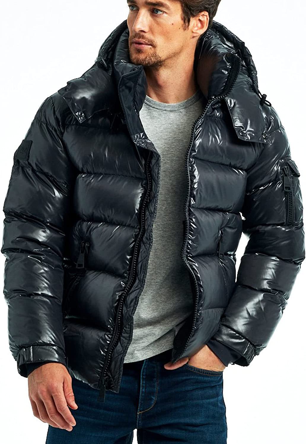 Men's Down Coat Winter Warm Down Puffer Jacket Coat with Hooded