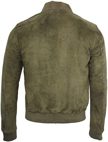 Mens Retro Khaki Goat Suede Leather Bomber Varsity Jacket