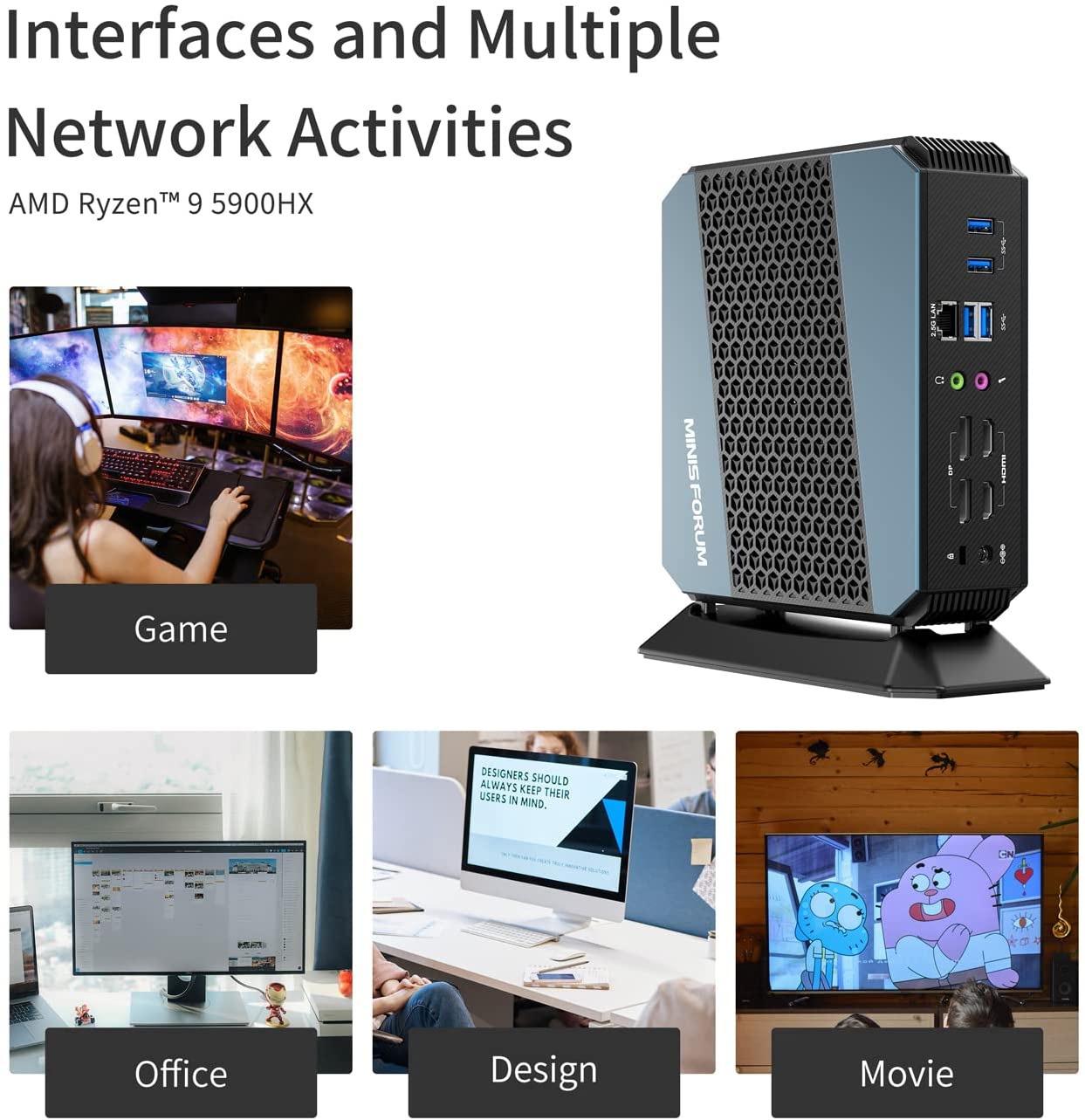Mini PC Windows 11 Pro HX90 AMD Ryzen 9 5900HX 8 Cores up to 4.6 GHz| 32 GB RAM 512 GB PCIe SSD | Radeon Graphics | Dual WiFi Bluetooth | 4K HDMI X2/ DisplayPort X2| 1X RJ45 |5X USB 3.0