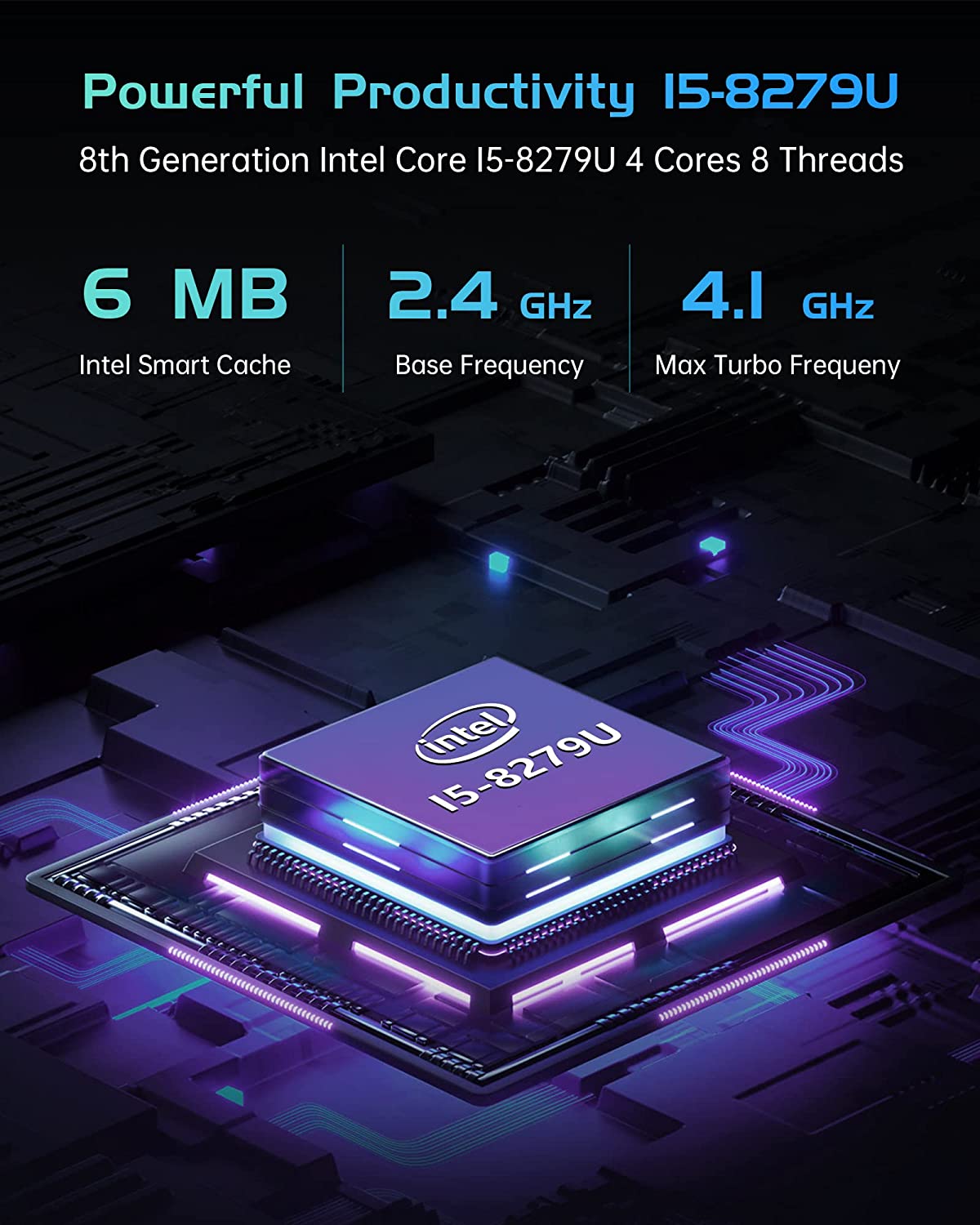 Mini PC Windows 11 Pro, Intel i5-8279U (up to 4.1Ghz) 16GB DDR4 512G M.2 SSD, 4 Cores 8 Thread Small Desktop Computer 4K HDMI VGA Type-C USB 3.0 WiFi 5 BT 4.2, Support Auto Power On