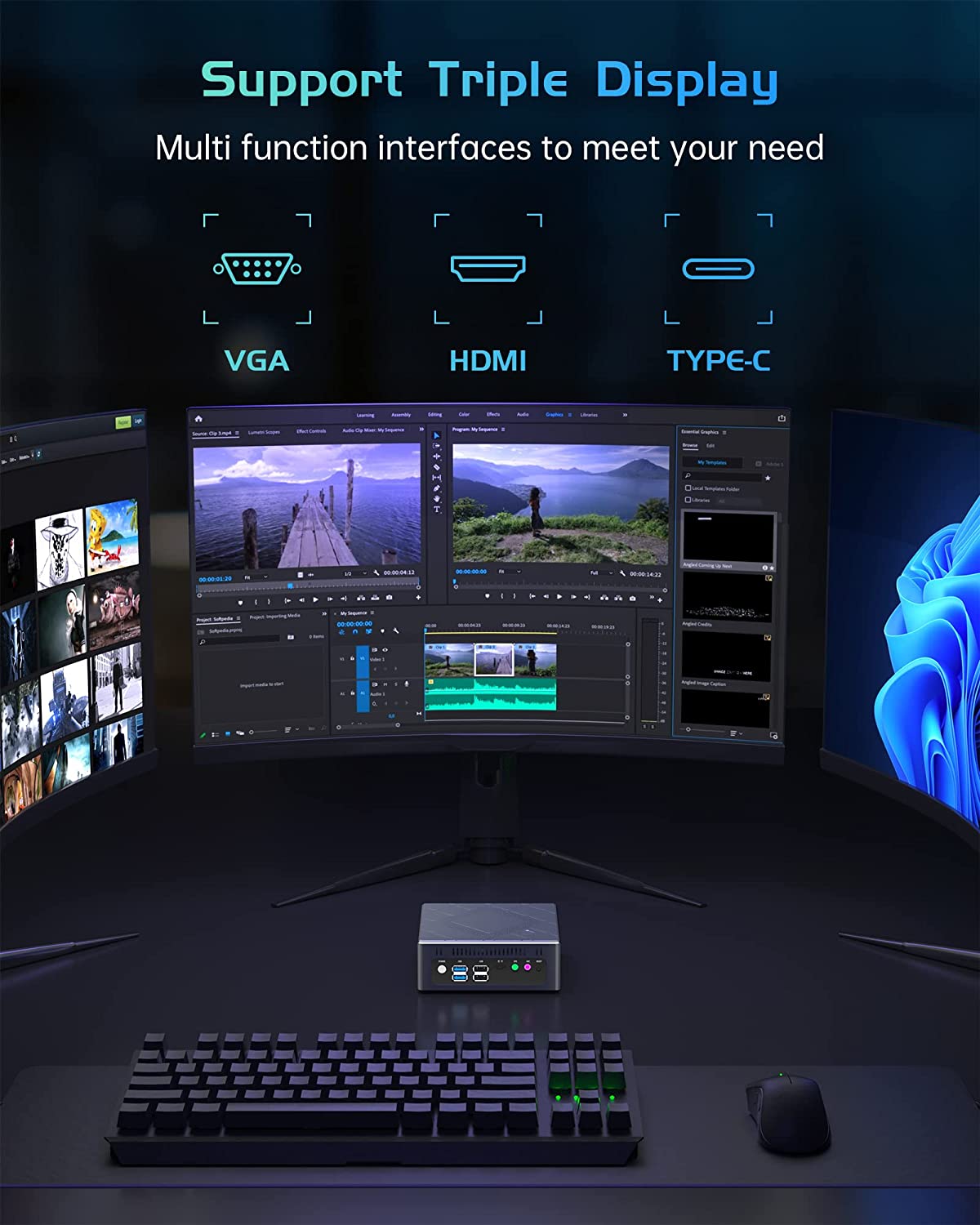 Mini PC Windows 11 Pro, Intel i5-8279U (up to 4.1Ghz) 16GB DDR4 512G M.2 SSD, 4 Cores 8 Thread Small Desktop Computer 4K HDMI VGA Type-C USB 3.0 WiFi 5 BT 4.2, Support Auto Power On