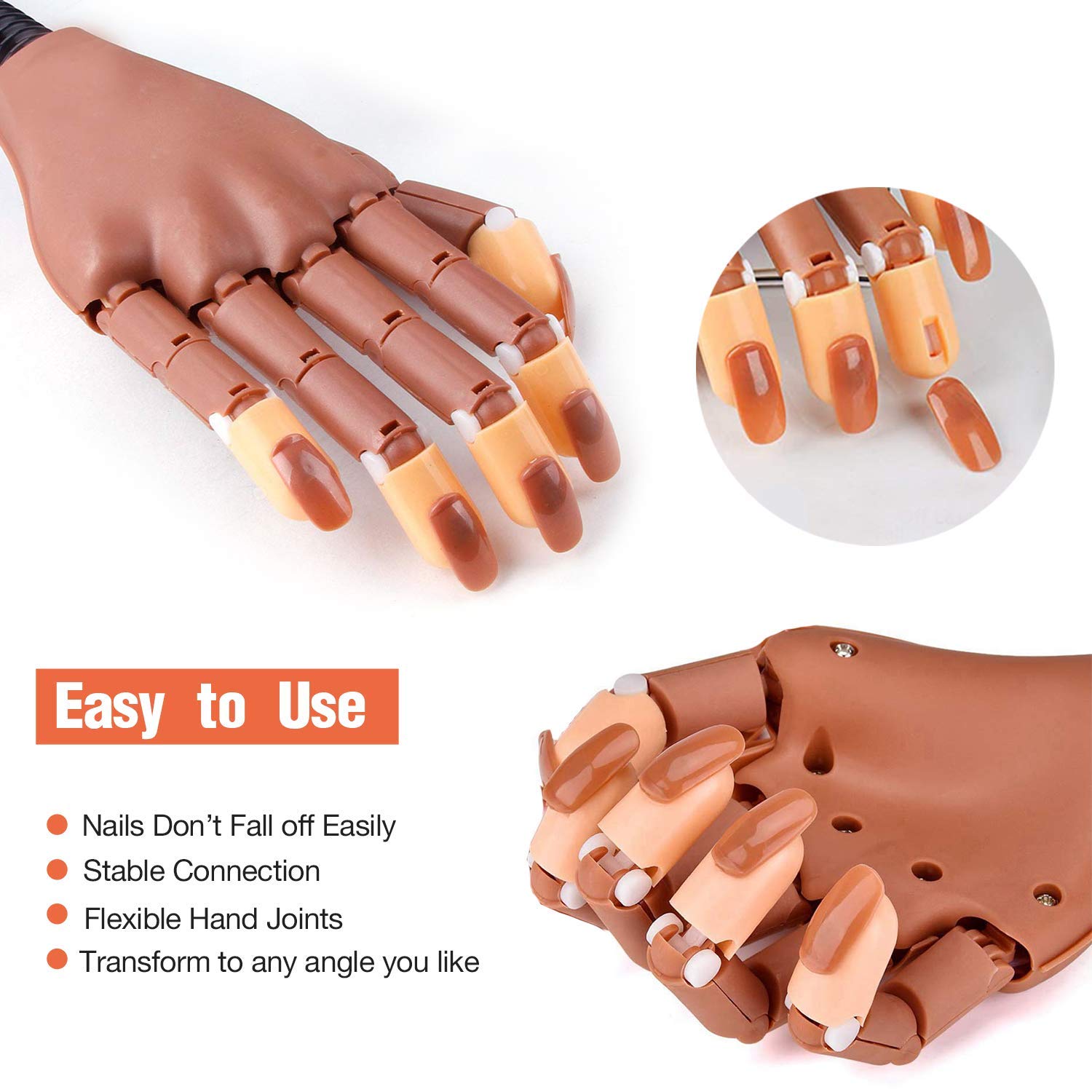 Nail Trainning Practice Hand for Acrylic Nail-Flexible Nail Training Hand Kits, False Fake Mannequin Model Train Hand with 300 PCS Nail Tips, Nail Files (304 Piece Set)