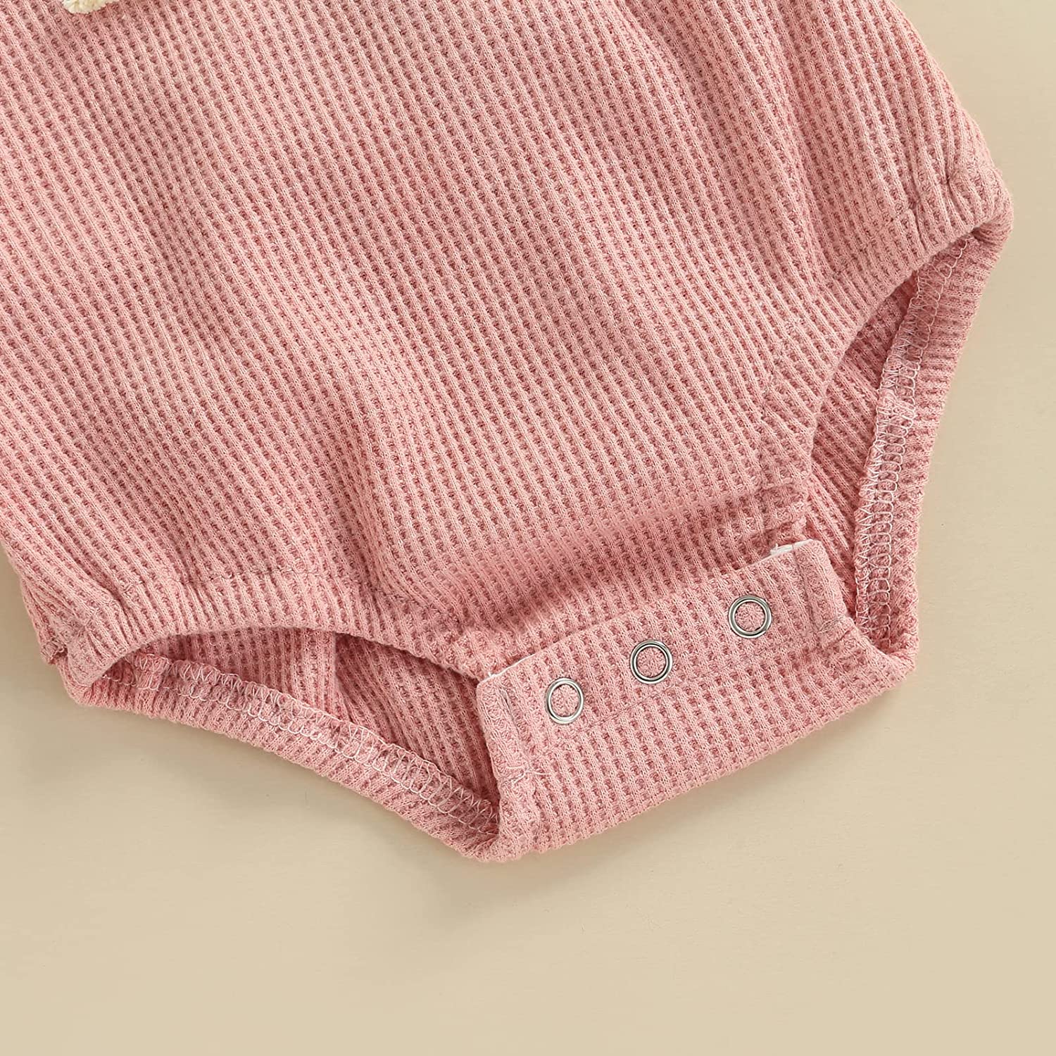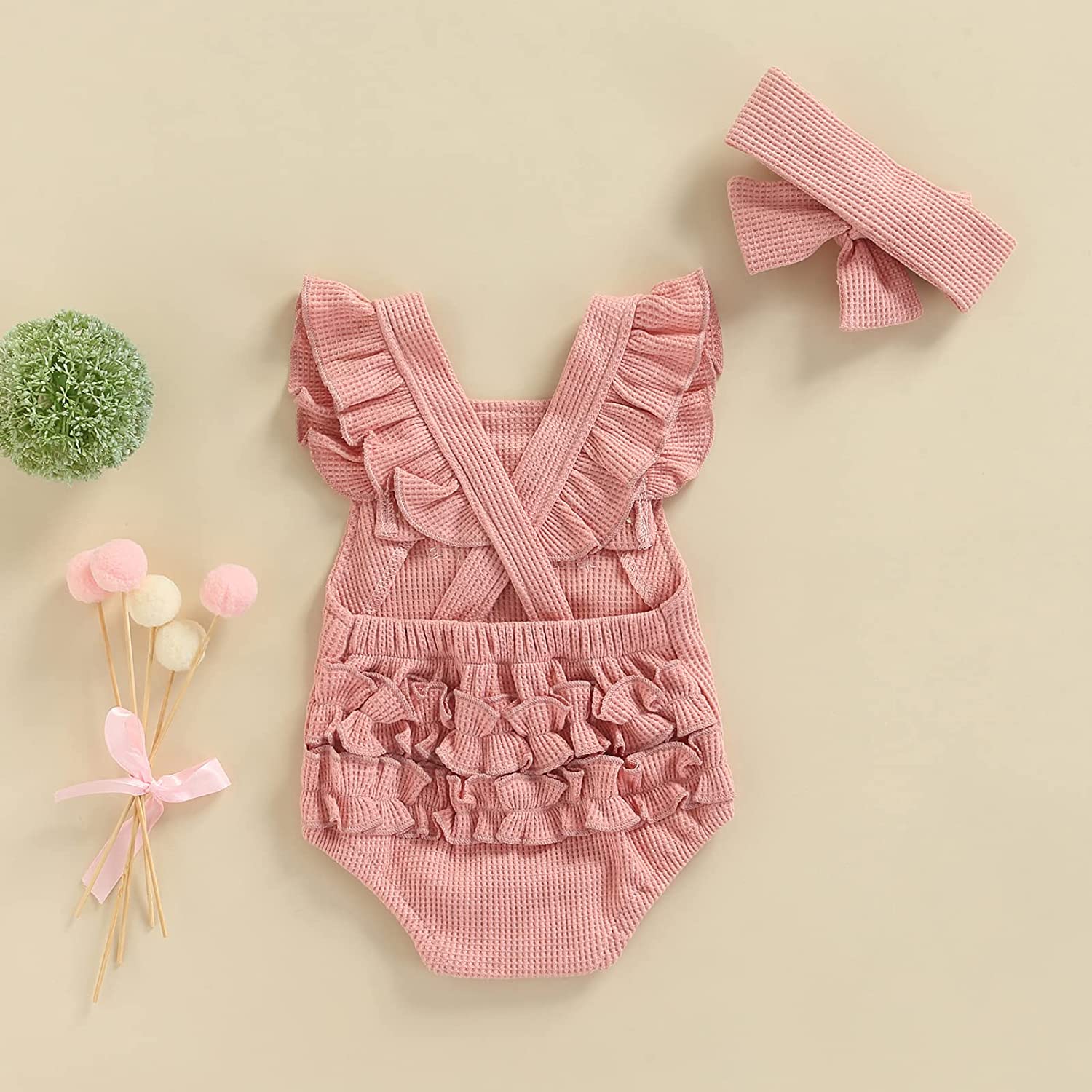 Newborn Baby Boy Girls Clothes Infant Rainbow Romper Waffle Ruffled Sleeveless Backless Bodysuit Jumpsuit Headband Outfit