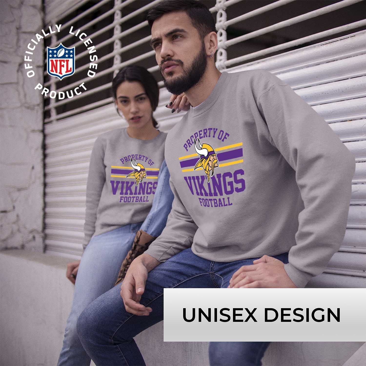 This Property of pullover crewneck sweatshirt is a cold-weather friendly jacket made from 50% ringspun cotton and 50% polyester. Our mens and womens football sweater is super comfortable, runs true to size, and is great for showing your team pride all year long. This comfy crewneck features the official Property of graphics will stay crisp and wear after wear and year after year. All colors and fonts are officially licensed and are of the highest of quality. These crew neck sweatshirts are made with air jet yarn for a softer feel and reduced pilling. This tagless crewneck sweatshirt is perfect for tailgates, games, and showing off your team spirit. Our pullover crewnecks are ideal gifts for men and women football fans. The unisex fit of our crewneck is ideal for both men and women. This crewneck is essential apparel for protecting yourself from the elements at a football game. The fleece material, ribbed cuffs, and waistband keep all the warmth in, which means there's no need for an extra jacket in the fall months– our crew neck sweaters have you covered. This Property of sweatshirt crewneck pullover is pre-shrunk and is ideal for that tailgate or game day when the temperature drops. Our crewneck pro football sweatshirts for women and men help you gear up and get ready to cheer the to victory.