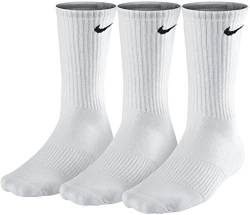 Made with arch compression and sweat-wicking technology to help keep you dry, the NIKE Unisex Performance Cushion Crew Training Socks (3 Pairs) offer comfort and enhanced support when working out or competing.