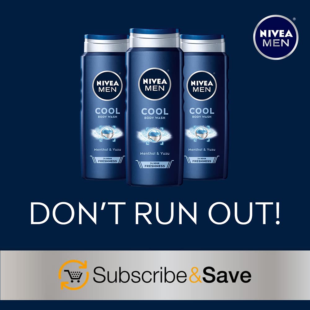 Take care of your skin with NIVEA MEN Cool Body Wash. This body wash gently cleanses and leaves skin feeling comfortable. NIVEA MEN Cool Body Wash is formulated with Menthol for a cool, icy feel. This NIVEA body wash for men can be used for shaving, and as a shampoo and body wash that is specifically crafted for men's skin needs. The refreshing formula does not dry out skin, making it great for everyday use. It is also free of phthalates, parabens and microplastic particles. With a long-lasting masculine scent and icy menthol notes, this body cleanser provides a revitalizing shower experience that leaves skin feeling cared for long after the shower. A refreshing body wash is a key part of a skin care routine and pairs well with NIVEA MEN Maximum Hydration Nourishing Body Lotion. To use, rub scented body wash into a lather while gently massaging over body and rinse.