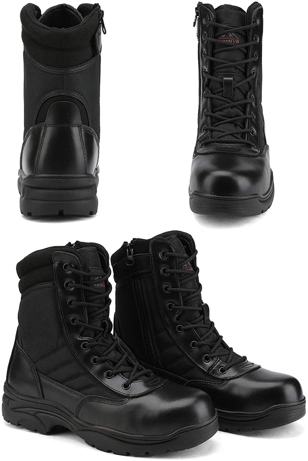 NORTIV 8 Men's Military Tactical Work Boots Side Zipper Leather Motorcycle Combat Boots