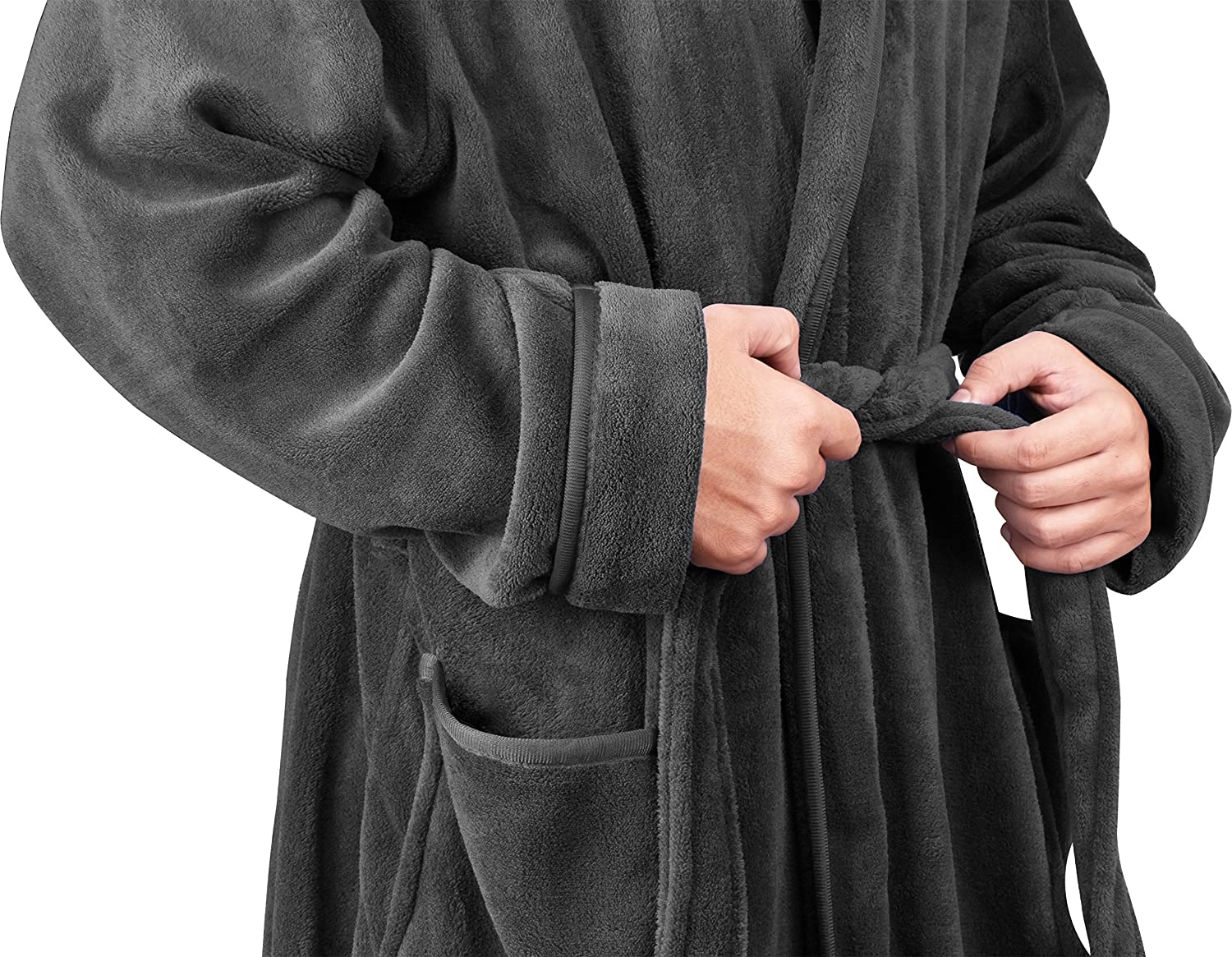 NY Threads Luxurious Mens Shawl Collar Fleece Bathrobe Spa Robe