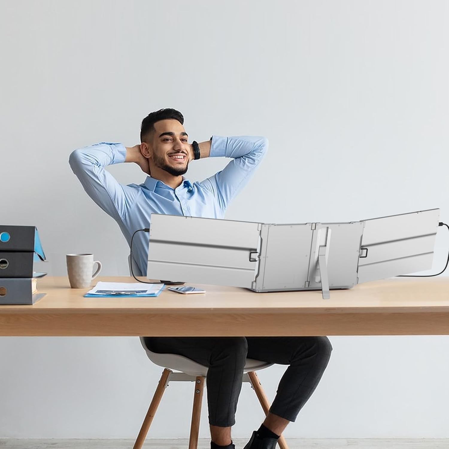 【? 300% Productivity】In this fast-paced era, multitasking has become a daily necessity. Try the OK16 triple portable monitor for laptop! This laptop screen extender supports three modes: Extended Mode, Mirror Mode, and Second Screen Mode, allowing you to open multiple windows simultaneously for work, video calls, watching movies, and gaming. It's perfect for IT professionals, programmers, designers, finance and investment experts, gamers, and anyone looking to work more efficiently.