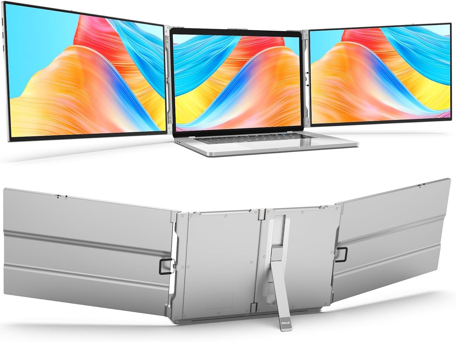 【? Immersive Vision】Pinnacle of display innovation—Oiiwak 16 inch triple screen laptop monitor extender redefines the boundaries of visual immersion and sleek craftsmanship. Boasting unparalleled screen real estate that dwarfs its peers, it stands tall as the largest triple screen monitor available today. 16:10 aspect ratio, 3.5mm bezel with 94% screen-to-body ratio creating an expansive 1200P HD canvas that invites you to explore, create, and indulge in a world of breathtaking detail.