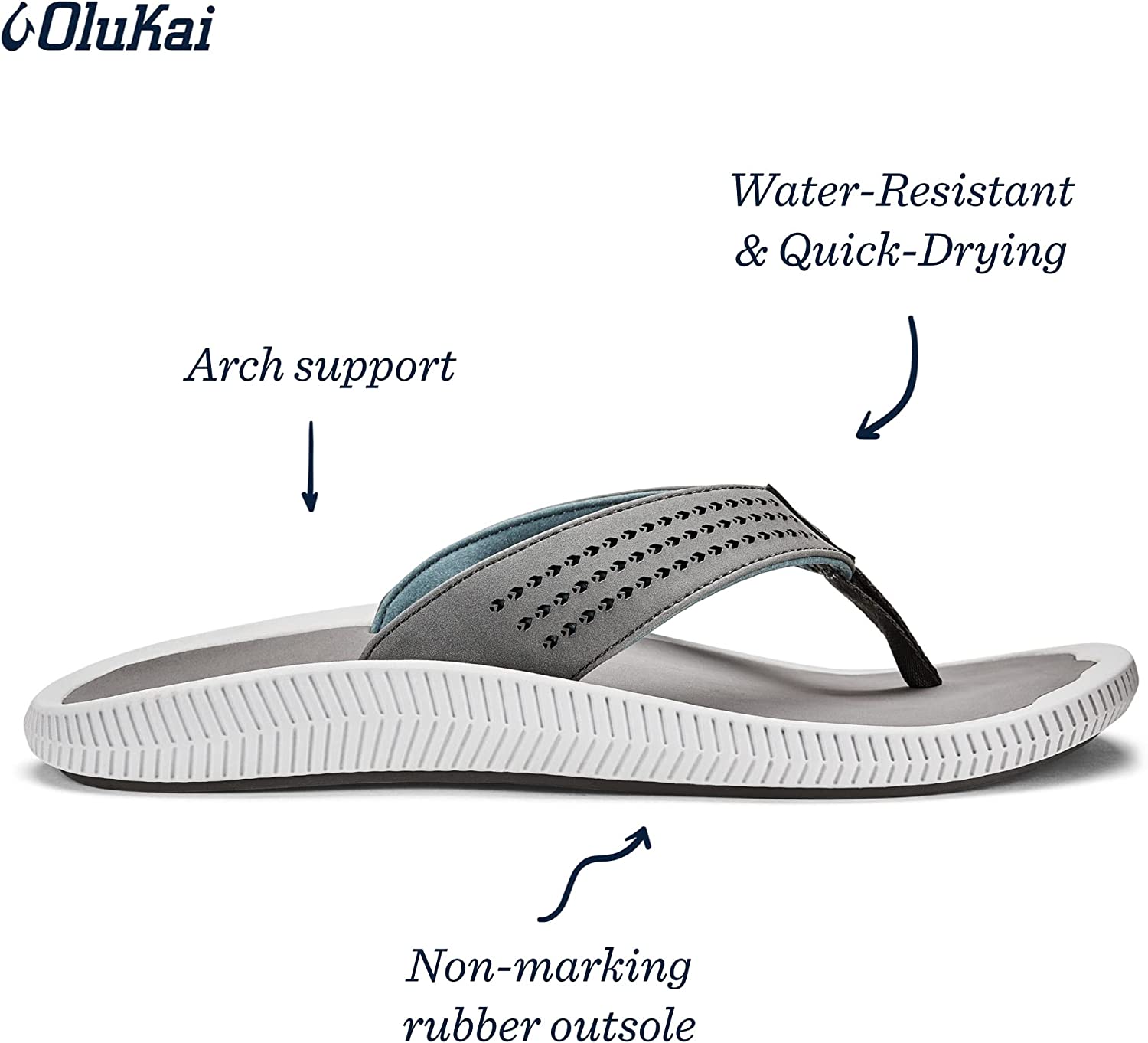 OluKai Ulele Men's Beach Sandals, Quick-Dry Flip-Flop Slides, Water Resistant Suede Lining & Wet Grip Soles, Soft Comfort Fit & Arch Support
