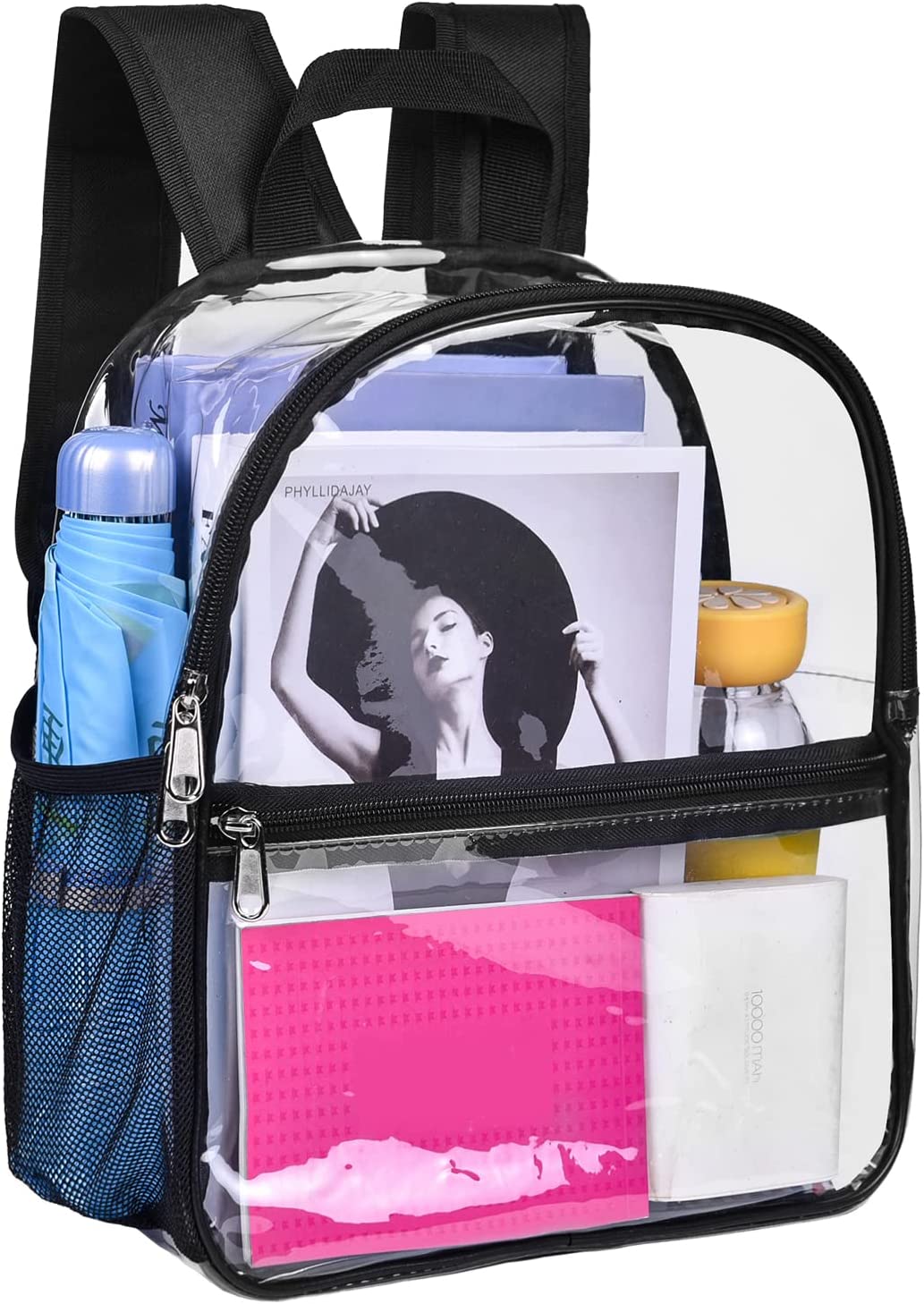 Oraben Clear Bag Stadium Approved Mini Clear Backpack, Heavy Duty See Through Backpack Small, Transparent Bookbag for Work, Security Travel & Sporting Event (Black)