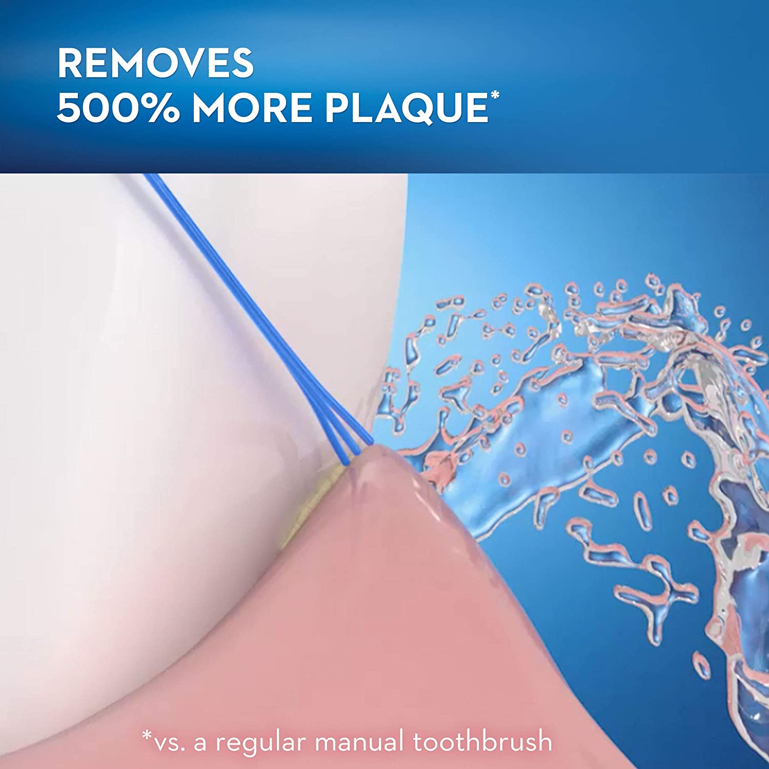 The Oral-B Cross Action Replacement Electric Toothbrush Head is Oral-B's most advanced technology. It features perfectly angled bristles to remove 100% more plaque for a superior clean. The round brush head is inspired by dental professional tools for a tooth-by-tooth clean, with specially engineered bristles. Additionally, the Bacteria Guard Bristles help keep your brush clean for up to 3 months by inhibiting microbial growth that may affect the bristles. The bristles do not kill bacteria in the mouth or protect you against disease. Always clean the product thoroughly after use. Compatible with the entire lineup of Oral-B powered by Braun rechargeable electric toothbrushes excluding Pulsonic, Sonic Complete and Vitality Sonic models. vs. a regular manual toothbrush when used on Pro1000 and up handles